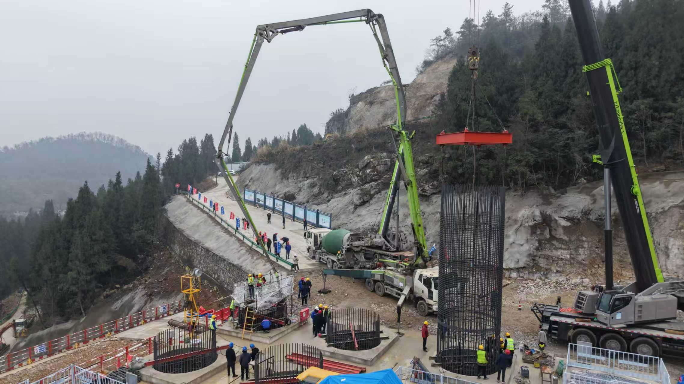 項目部克服山區複雜地形、環保要求高、施工條件受限及天氣多變等諸多挑戰,優配資源、科學組織,2025年11月底順利完成南岸主塔樁基試驗樁澆築,12月中旬經檢測認定為一類樁,為本次首樁的成功澆築奠定了堅實基礎。