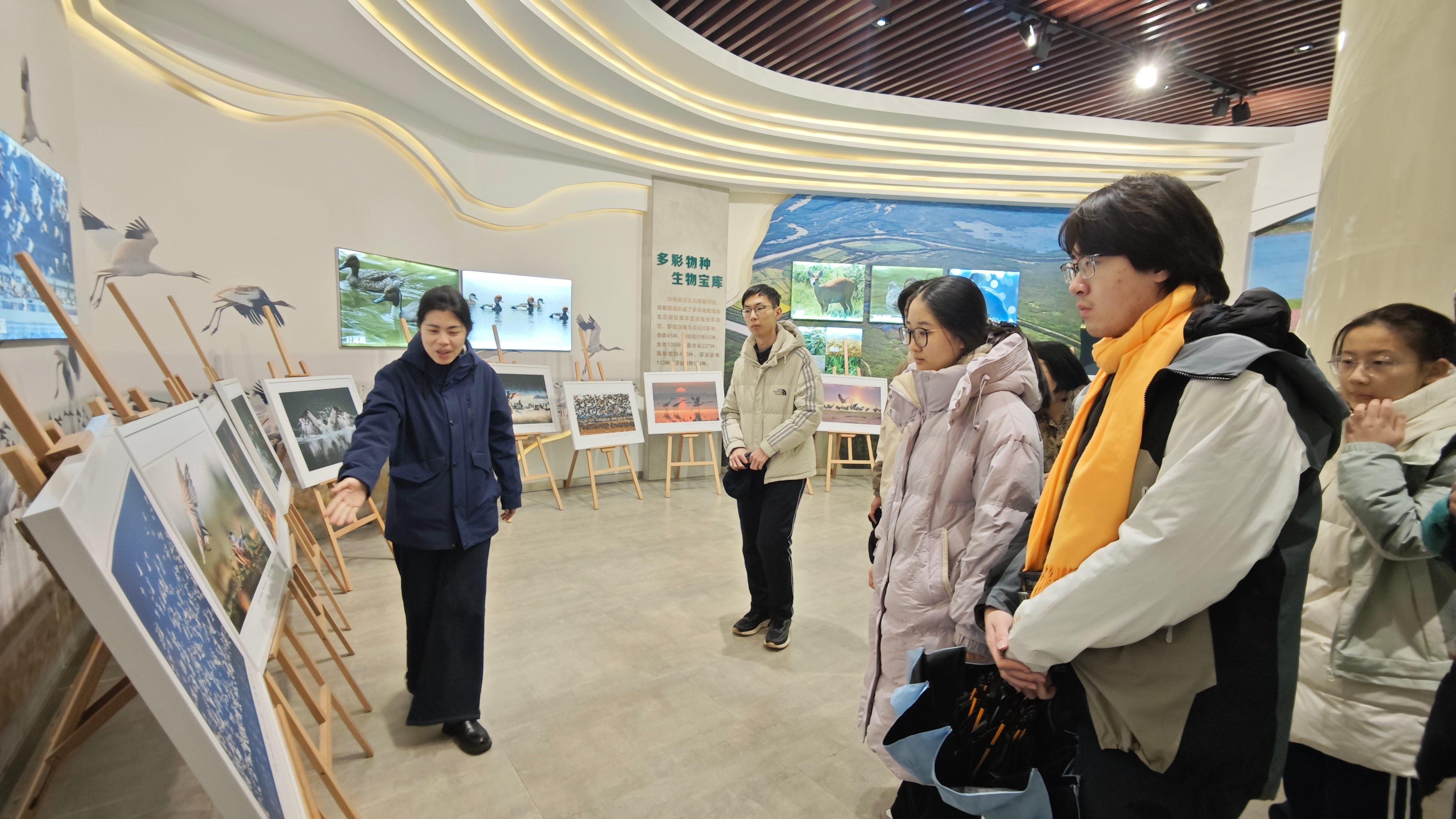 在第30個「世界濕地日」到來之際,為深入宣傳貫徹《中華人民共和國濕地保護法》,提升公眾濕地保護意識,1月31日,江西鄱陽湖國家級自然保護區中國好人王小龍工作室緊扣「濕地與傳統知識——致敬文化遺產」年度主題,在永修縣 吳城候鳥小鎮的鄱陽湖濕地與候鳥宣教中心組織海南、湖北、雲南、廣東等全國高專校院部分學生開展了形式多樣的濕地保護主題宣傳教育活動,通過動物標本、動畫視頻、圖片圖表、AR體驗等展示形式帶領觀眾了解候鳥,讀懂鄱陽湖。積極引導社會公眾了解濕地、珍愛濕地、守護鄱陽湖濕地。