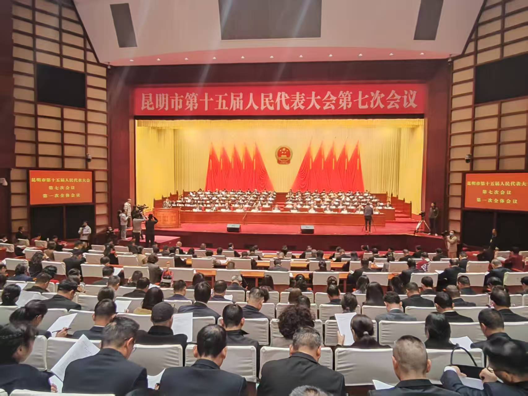 2月2日上午,昆明市第十五屆人民代表大會第七次會議在昆明會堂開幕。市長楊承新代表昆明市人民政府向大會作政府工作報告。
