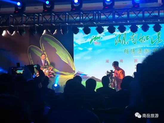 湖南省人民政府副省長何報翔向與會嘉賓推介湖南旅遊