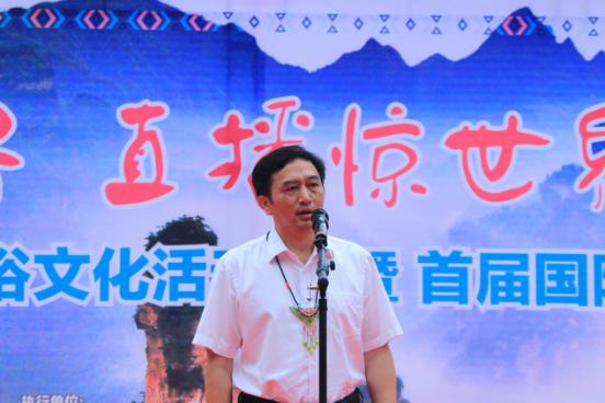 在當日上午的開幕式上,當地民間藝人登臺獻技,向中外遊客和嘉賓展示了打溜子、土家織錦、茅古斯舞、花燈戲等一系列非遺節目。尤其是民族服飾走秀,土家族的青年男女身著豔麗精巧的土家服飾,既演繹著遠古時代“裳”的遺風,又傳承著土家人的智慧與樸實。