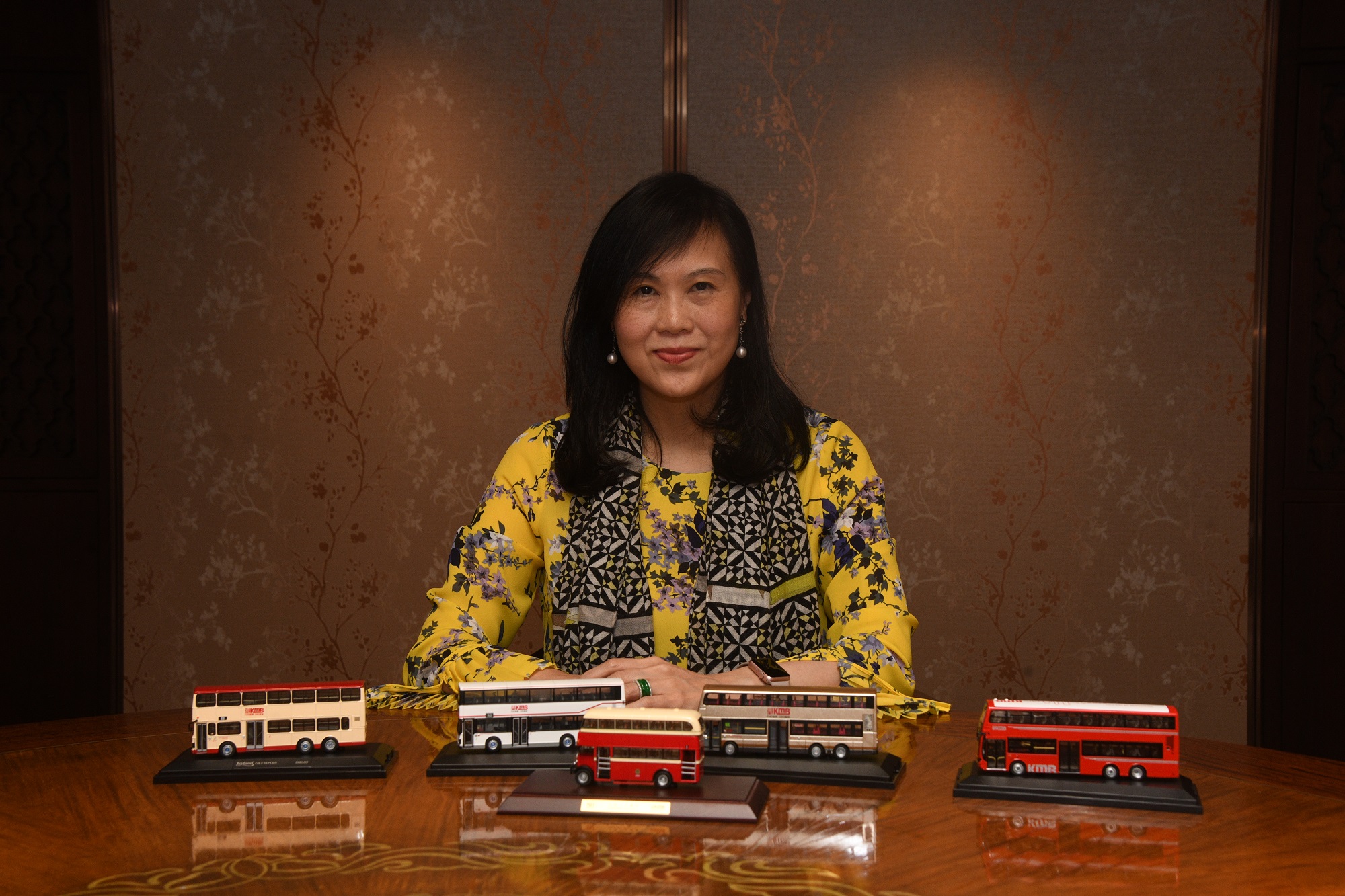 和藹可親的微笑,暖色調的黃色綢緞上衣,這位每天公務纏身穿梭於港九各區的領袖人物,見一面實屬不易。伍穎梅接受採訪時,如數家珍般地細選出五部具有代表性的巴士模型放在枱面上,興致勃勃地講到:「這部紅色懷舊款模式是1949年引入全港第一部雙層巴士——丹拿A型,很有收藏價值,富有歷史感;這部白色巴士是第一部空調雙層巴士『利蘭奧林比安』型;這一部是低地台金色巴士,之後的巴士基本定型……。」交通工具隨著香港的發展與時俱進,承載了眾多獨具特色的香港文化,每一次改變似乎是歷史的選擇,也體現了背後掌舵人對市場把控的敏銳力。