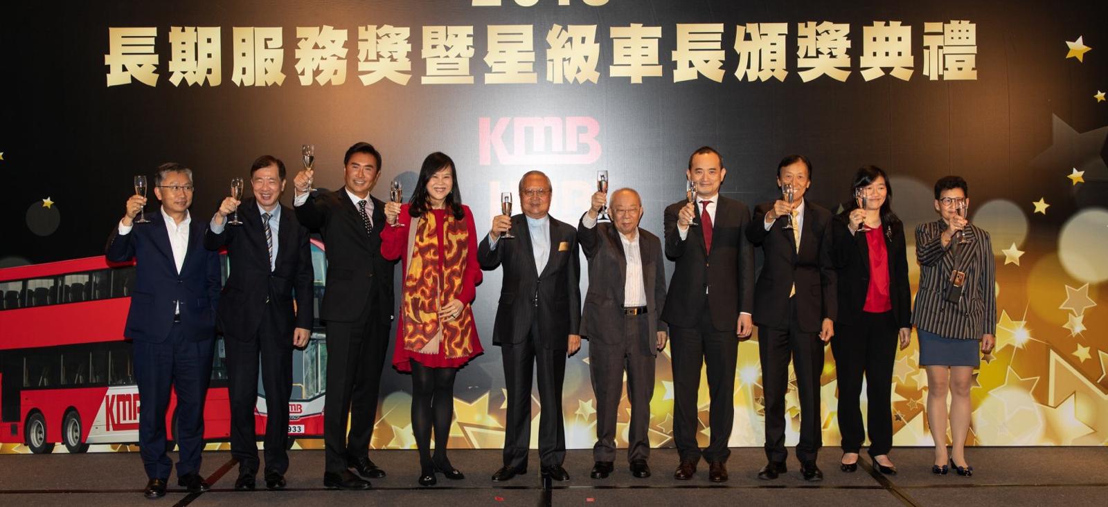 伍穎梅(左四)與各九巴高層出席長期服務獎暨星級車長頒獎典禮。