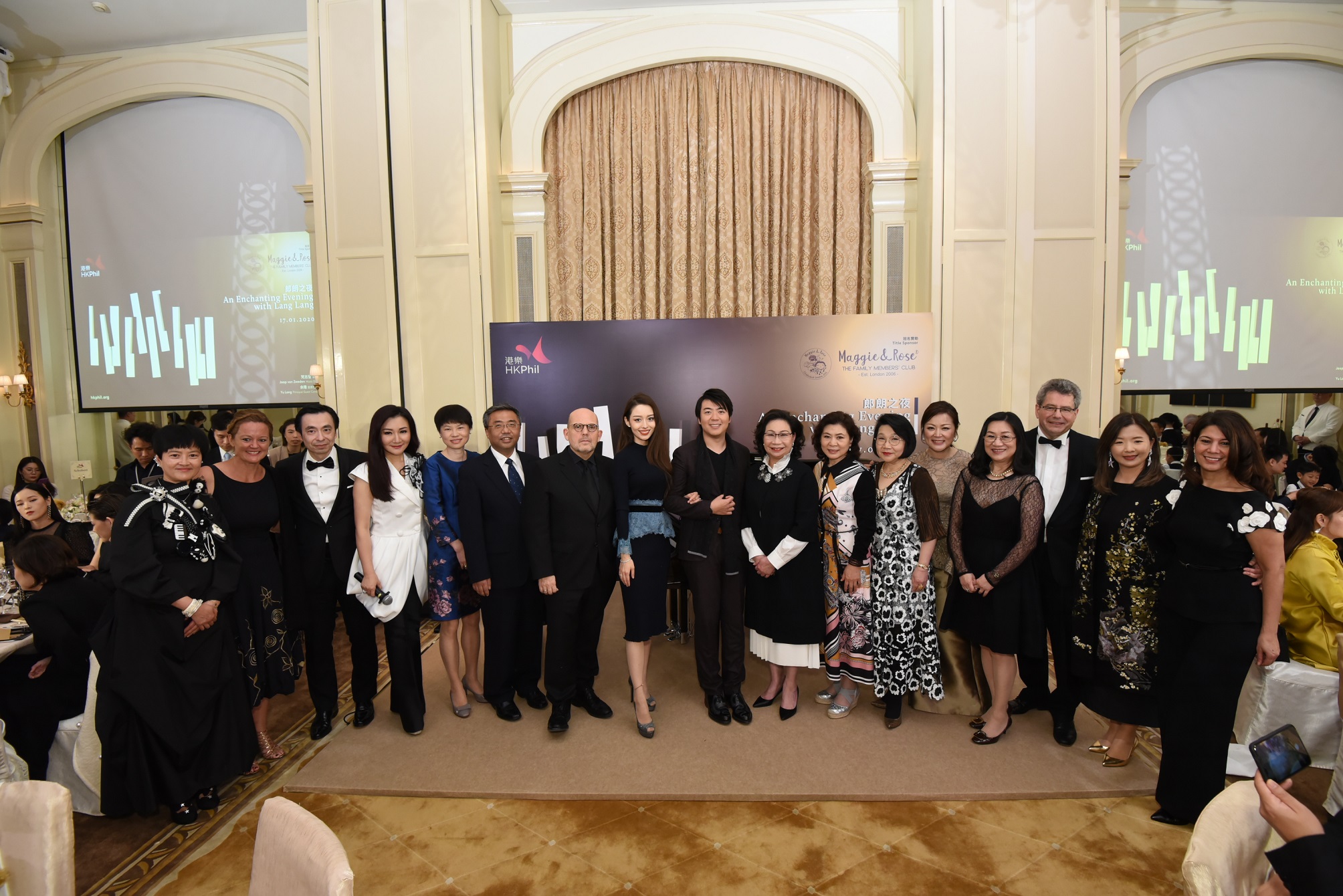 鋼琴巨星郎朗及太太吉娜.愛麗絲親臨現場為籌款助力,包括港樂音樂總監梵志登、全國政協副主席梁振英夫人梁唐青儀等政商名人蒞臨晚宴。