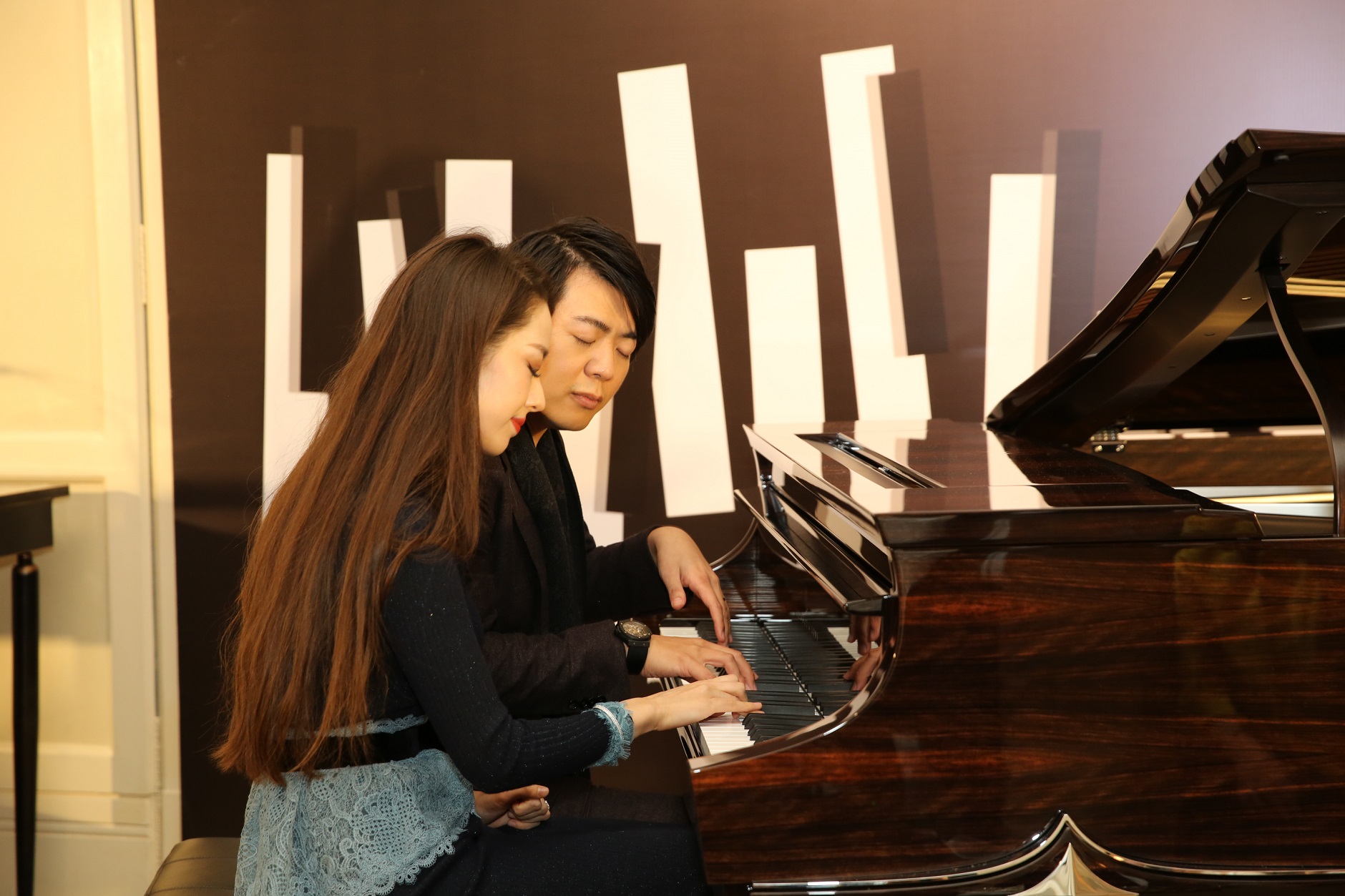 郎朗與太太吉娜.愛麗絲為嘉賓彈奏動人的《彩雲追月》四手聯彈。
