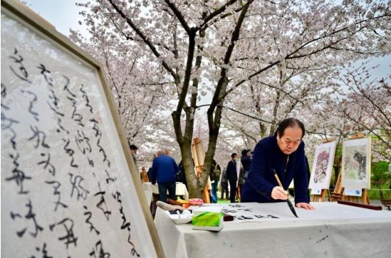 樱花树下的文旅活动充分利用“落户”宝山的文化人资源。主持人阎华一连组织了两场人文雅集,华东师大中文系副主任方笑一、上师大美术学院副教授邵仄炯、古琴演奏家杨致俭、评弹表演艺术家周红、主持人于立等在台上围绕春天的古诗文侃侃而谈,古琴、评弹声韵悠悠;另一边,丁申阳等10位沪上书画家受龙现代美术馆之邀,在樱花林中挥毫泼墨、以墨会友。“吃货”们也有福,“樱花美食赏”上,韭菜蚕豆、荠菜鱼圆、樱花方糕……特色食材结合非遗技艺手法,烹出了樱花季的“宝山味道”。举办多年的樱花高定时装秀也未缺席,如云似霞的樱花林中,模特们融入自然美景,营造出人文与自然相映成趣、相互交融的视觉盛宴。