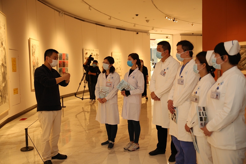 深圳市文化廣電體育局局長張合運在開幕式上表示,“我們在一起——深圳抗‘疫’主題藝術作品展”是關山月美術館復工開館以來第一個現場展覽,也是獻給這場不同尋常的抗疫戰爭的致敬活動。作為戰“疫”的文藝生力軍,深圳文藝工作者及時捕捉靈感、精心創作,對奮戰在抗疫一線的醫務人員頌出了心中的歌。