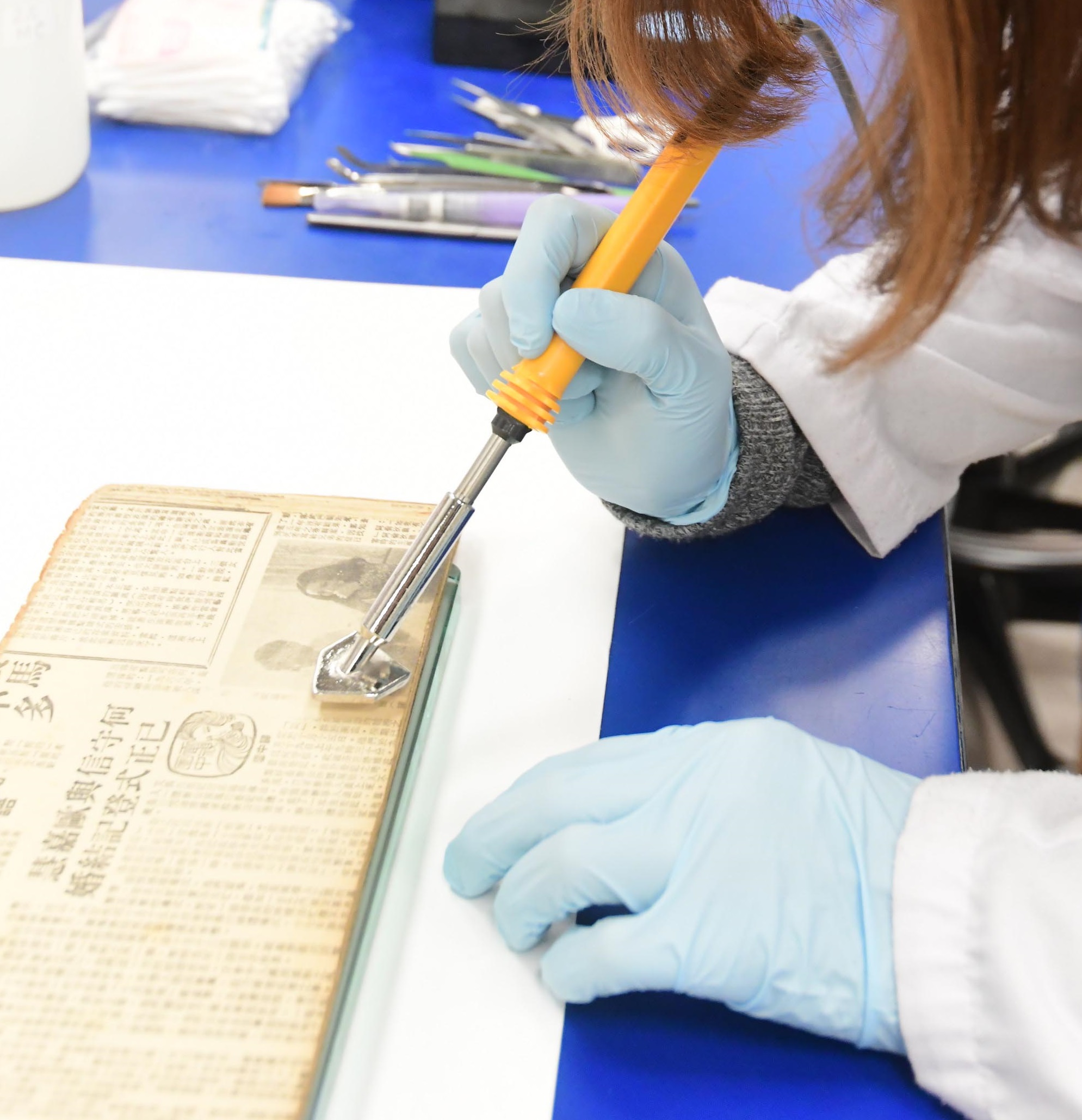 帶領記者遊覽修復實驗室的是香港文化博物館一級助理館長鄧汶慧(文物修復——印刷品及相片)及甘婉君(文物修復——木器及製品)。兩位身穿白袍、戴上口罩及手套的修復師,造型儼如醫生,每天工作就是為文物「把脈檢查」,並如做手術般將破損的藝術品及文物修復成接近原貌。二人接受本報專訪時表示,檢驗文物的「真正身份」是修復工作的第一步,對往後釐定修復工序非常重要。實驗室內有一間配備多種科學分析儀器的房間,專門檢驗文物的材料和受損原因及程度。「有時未必能一眼看出文物由哪些材料製成,還有內含的化學成分。肉眼所見黑色,究竟是不潔變黑抑或是氧化形成?」鄧汶慧表示,分析材料有助選擇合適的物料或運用各種「小電器」進行修復,「希望修復後短時間內不會變壞、變色,可留存予下一代。因此會選穩定、可去除的『可逆性』物質修補,在必要時能夠還原,減低對文物的傷害。」