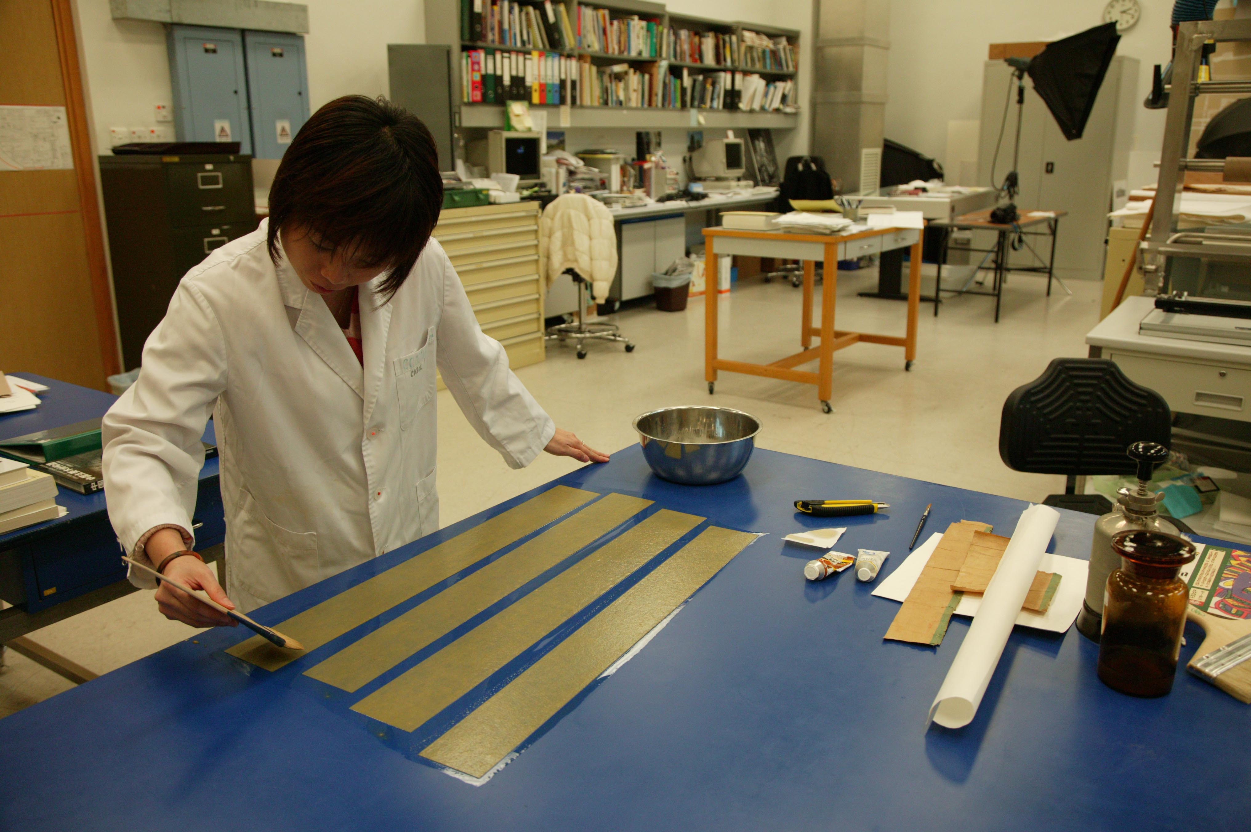 要令破損的文物恢復原貌,必須經歷漫長的修復工序。由於文物種類太多,辦事處會將修復師分為平面及立體組別,再根據文物的材質細分工作,兩位受訪者分別來自平面及立體組。在甘婉君的辦公室,桌面放了各樣化學試劑,刷子、剪刀、鉗子、銼子等;至於鄧汶慧的辦公室,除了化學試劑外,更引人注目的是裱牆,用於裝裱書畫。