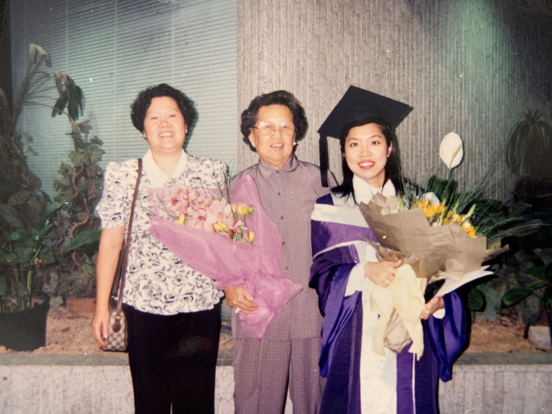 Heidi中學時代參與話劇製作後對表演藝術一見鍾情,畢業多年後,曾回到母校出席年度戲劇演出。圖為她與校長去年的合照。