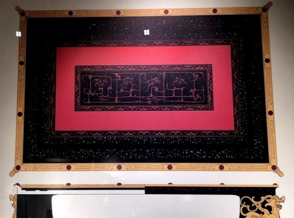 盱眙大云山西汉江都王陵发现的嵌宝石漆案还原图。 赵亚玲 摄