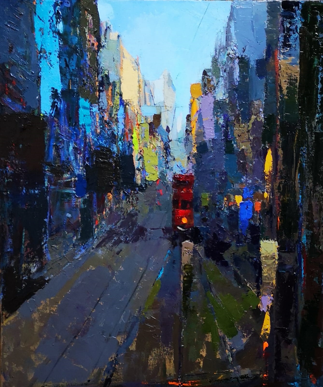 廖井梅的學歷之高,在香港畫家數一數二,然而,對於目前的她來說,學歷高低、是否學院派等,已經顯得不太重要,這從她的作品抽象與寫實交織可見一斑,「抽象是打破學院派,尋求內心的自我。儘管學院派是真實的、嚴謹的,但如果全是虛無縹緲,過於抽象又會顯得薄弱。」繪畫對她而言是為了尋求自由的狀態,表達自己的真實感受,從而影響別人。《天星餘暉》與《夕陽渡》是基於藝術家生活所感而創作,「我在香港經常『過海』,在維港兩岸看到的黃昏景象,令我很有感觸,就想記錄下來。」上述兩幅作品均描繪了天星小輪在夕陽西下航行的情景,這畫面相信不少香港人都看過,但廖氏的寫意畫法卻令景色增添生氣。「我希望有『實在』的東西在作品之中,創作時我會用顏料在原畫上修改。這個過程就像版畫,將顏色壓印在畫布上,將我的生活經歷融合其中。」這種繪畫手法套用在人體畫與風景畫之上,讓觀者不但能看到一層層厚重顏料的痕迹,還有廖井梅的日常生活軌迹。
