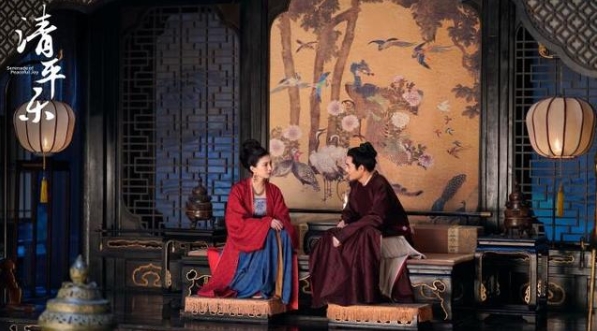的确,自2015年《琅琊榜》打开了古装剧“新世界”的大门:这部改编自热门网文的作品,讲述的是“架空”故事,却用精致考究的细节营造出真实的质感。更难得的是,在说圆故事之外,剧中风格化强烈的运镜、配色、构图更体现出一重罕见的美学想象力。经过几年的行业积累,美学“附加分”已然成为“基础分”——一场围绕古装剧的美学进化论正潜移默化地提高着观众的审美需求。与《琅琊榜》同出于正午阳光团队之手的《清平乐》自然也将“美商”发挥到了极致。剧中低饱和度的画面配色、对称唯美的构图,都在为宋朝素雅端庄的美学风格背书,而人物的通天冠服、龙凤花钗冠、珍珠花钿、乌纱帽等古装服饰也细致考究。有观众评论,随便截个屏,便是一幅宋朝古画。