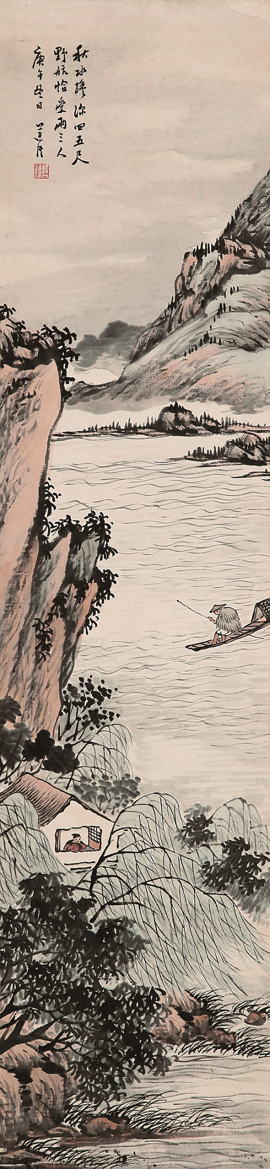 題識書「秋水才深四五尺,野航恰受兩三人。」可知此畫乃是展現杜甫七律《與朱山人》的情致意境。詩畫結合,以畫印詩,以詩證畫,通過圖畫和詩歌的互相配合,使得畫作突破了紙面的限制,實現了從有形到無形的突破,形成對畫面的良好補充,真可謂是「山隨畫活,雲為詩留」,一片詩情畫意,為觀者帶來別開生面的視覺享受。