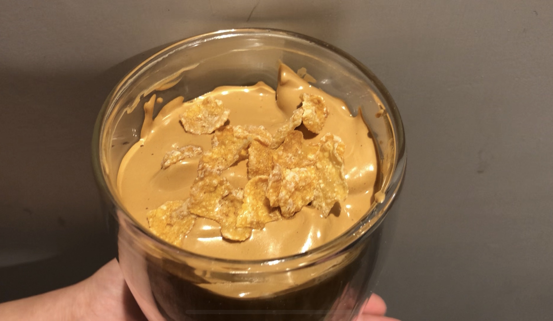 6.最後可根據個人喜好加入可可粉或者脆脆片,品嘗時攪勻後即可享用。