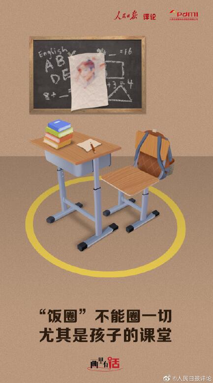 5月13日晚,人民日报评论此事称,越界的追星行为,不仅透支着明星的流量,也可能反噬偶像本身,更侵蚀着饭圈文化的正向价值。职业底“线”不能破,理性之“圈”不能出,饭圈不能圈一切,尤其是孩子们的课堂。文明理性追星,才能激荡起粉丝群体的正能量。