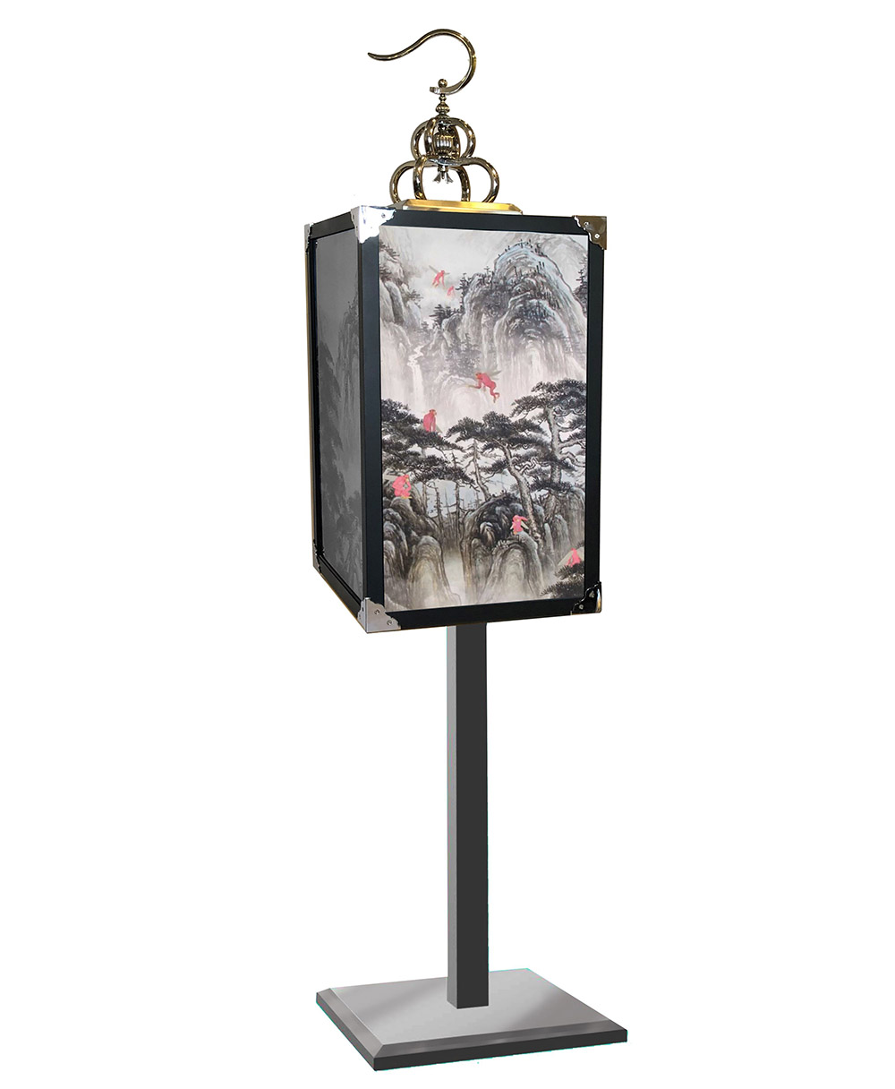 甘志強的作品如此前衛,令筆者感到反差的是他在創作裝置藝術之前,曾學過傳統國畫,觀看者能從其作品中欣賞到國畫元素——松樹。「我小時候善於畫松樹,這是我最有信心、最得心應手的題材。」甘氏表示《原始的飛行》及《晨光》均出自他的手筆,《晨光》於不鏽鋼上用電筆刻畫。用電筆會否比普通毛筆更難控制?「我將國畫所用的中鋒、側鋒、偏鋒等筆法技巧用電筆刻上,對於我來說兩者的畫法一樣。」他認為水墨畫不應局限毛筆繪畫,現代水墨是百花齊放的。由於甘氏細緻的雕刻,當燈照射在不鏽鋼板上,整棵松樹熠熠生輝,恍如早上的太陽照射松林,展現出傳統水墨畫難以呈現的動感。現正舉辦的展覽「當代形式的水墨畫」便能觀賞到甘志強這件創新的作品。同場展出的另一件展品《盆景 十二》同樣以不鏽鋼創作,並以水墨筆法刻出松樹,「盆景將自然景物濃縮於小小花盆之中,而我嘗試以相同的方式在鳥籠上重現大自然。」在甘志強的小小鳥籠之中,亦濃縮了各種發人深省的故事。