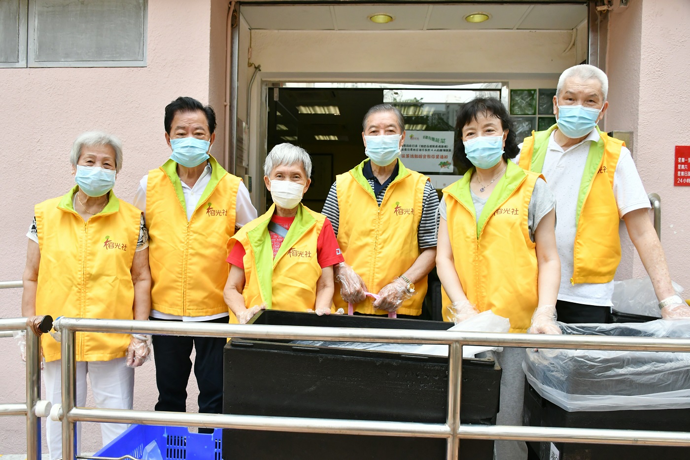 採訪當日,記者在竹園飯堂外看見不少長者提早半小時已在排隊等候派飯,排第二、三位的劉婆婆與陳婆婆向記者表示,在該區輪候派飯經已數年,以往在中心飯堂內吃,長者之間可以互相聊天,消磨時間。雖然現在因疫情取消了堂食,改為領取食材回家烹煮,但兩位婆婆並不覺得麻煩,陳婆婆笑稱:「只要有飯吃就好了。」記者問到口罩的存量時,兩位婆婆指中心曾多次派發口罩,且連月來她們甚少出門,所以有足夠口罩使用。聶主席透露,疫情期間在派飯盒的同時亦會每人多派送一個口罩:「希望老人家不要重複使用口罩,這三個月來,每月派發了一萬一千多個口罩。」他感謝多位善長在疫情期間,捐出數量龐大的口罩,讓榕光社可以照顧長者的生活所需。