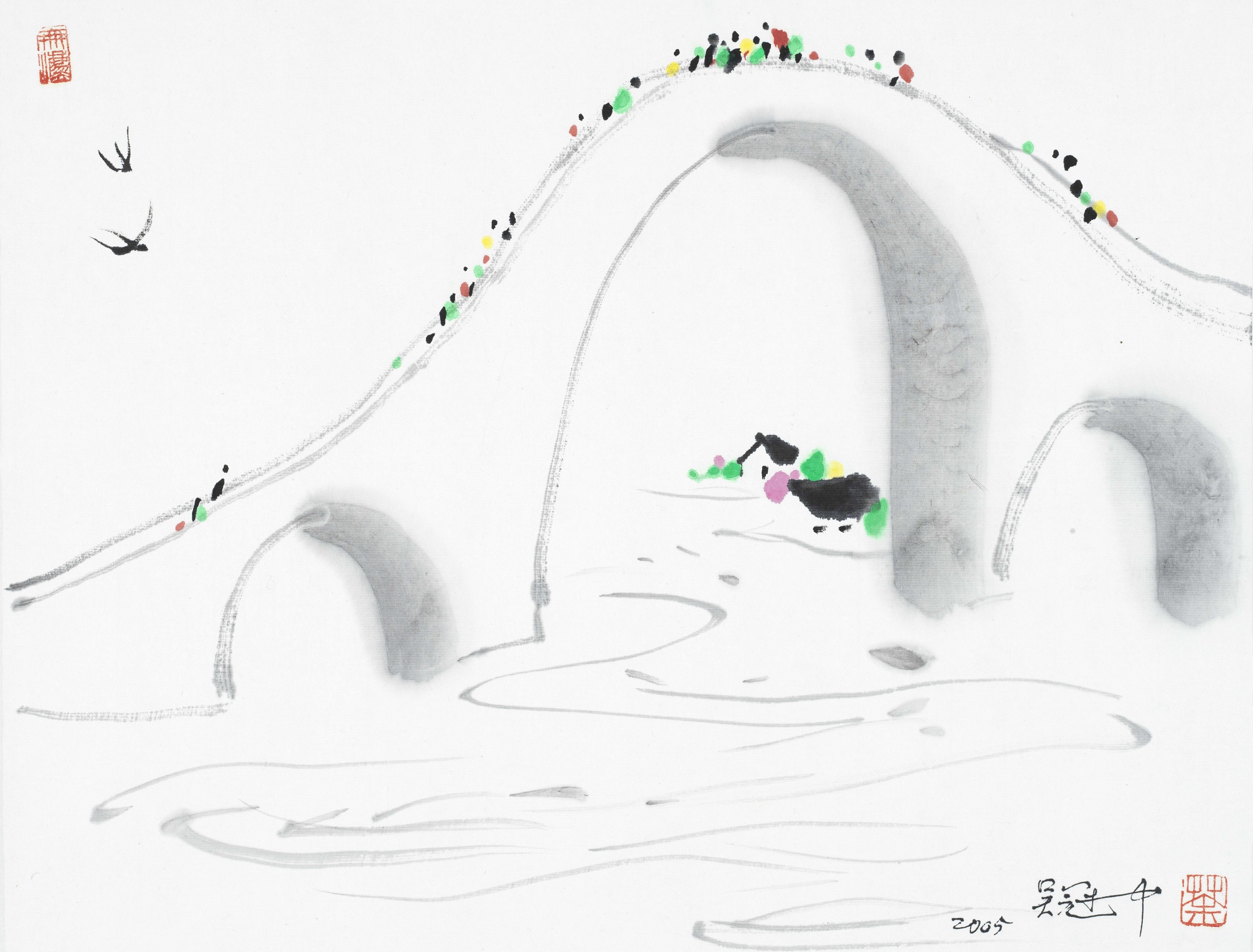 吳冠中作品《憶杭州(橋)》,2005年。