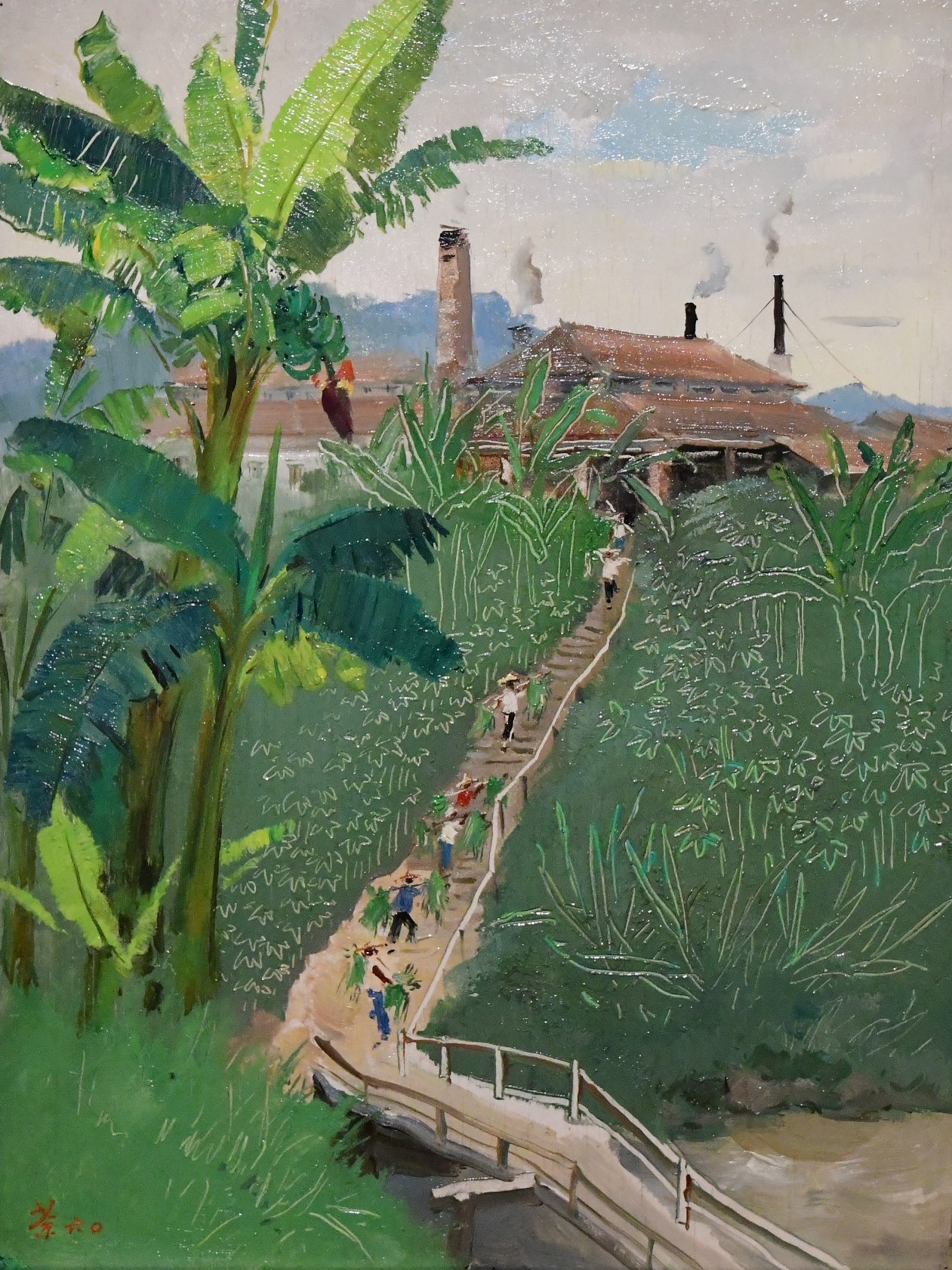 吳冠中作品《海南島香茅加工廠》,1960年。該作品的線條是畫家拿畫刀刮出來的,非常有風骨。