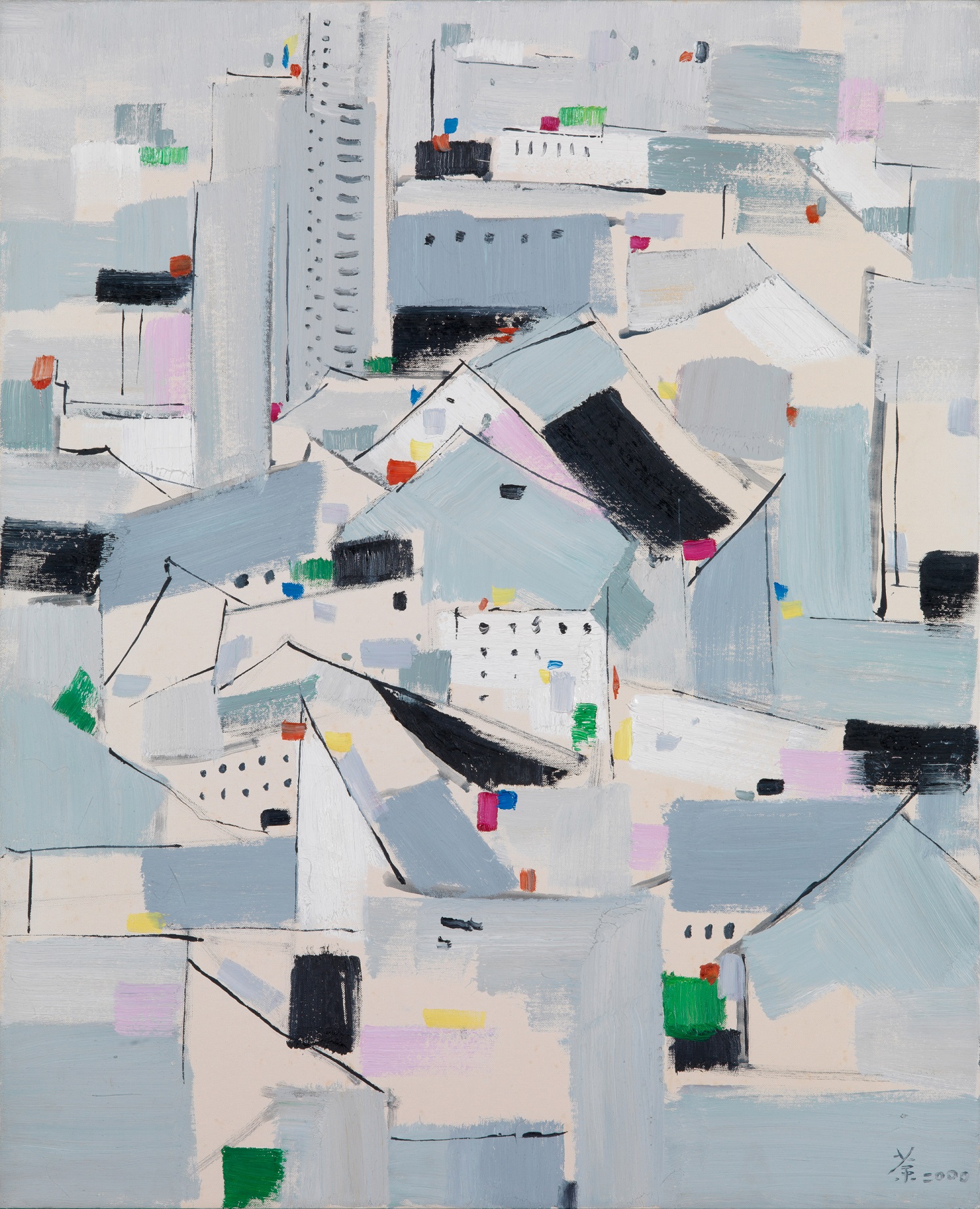 吳冠中作品《村》,2002年。