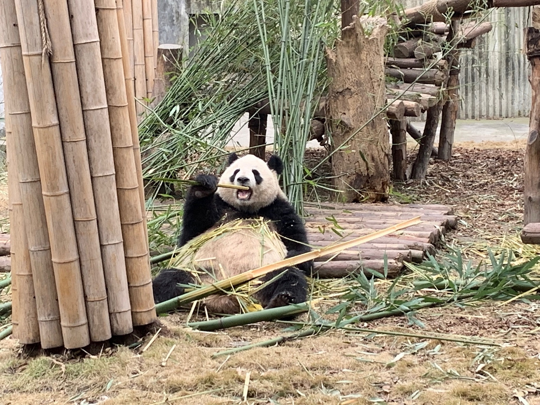 一隻大熊貓每日需要攝取4300至5500千卡路里熱量的食物,相當於人類進食20個漢堡包,食量相當驚人。所以,也難怪裏面的熊貓有一大半在啃竹子,有一隻更是豪邁地躺着吃,毫不在意旁人目光,吃飽就睡,睡醒就吃,優哉游哉的「吃貨」人生,讓人看得很是羨慕,不少人直呼這是他們的理想人生。