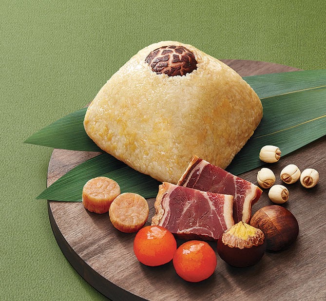 有人愛新口味,也有人喜歡懷舊,品牌的傳統經典「金腿瑤柱嘉湖糭」,以北海道宗谷縣瑤柱入饌,配以金華火腿,混入預先浸透醬油的糯米,每一口都令人「回味」——回想起昔日的美味。想趁節日吃得豪氣一點,可選擇矜貴的「雙黃金華火腿瑤柱裹蒸糭」,金華火腿及甘香鹹蛋滲透糯米,配以栗子、瑤柱和蝦米,用料十足。
