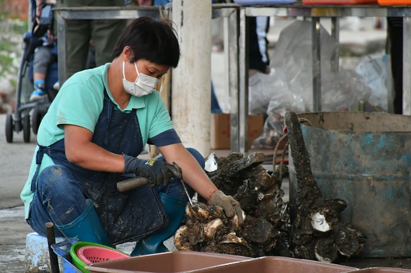 養蠔戶採集香港蠔後,即場開蠔,供市民購買。