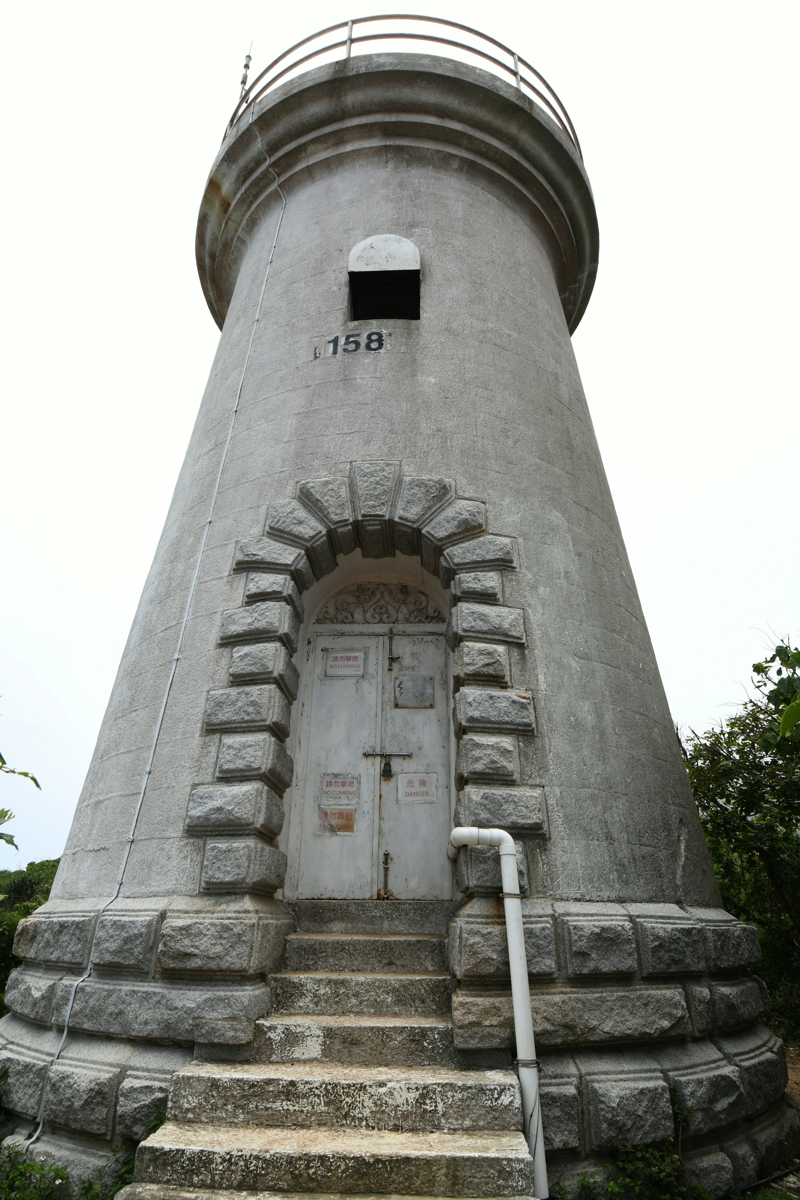 鶴咀燈塔是一座由花崗石築砌的圓筒形建築,高9.7米,燈塔底座和拱形入口均由粗琢石塊砌成,入口的鐵門上方飾有幾何圖案,別具特色。