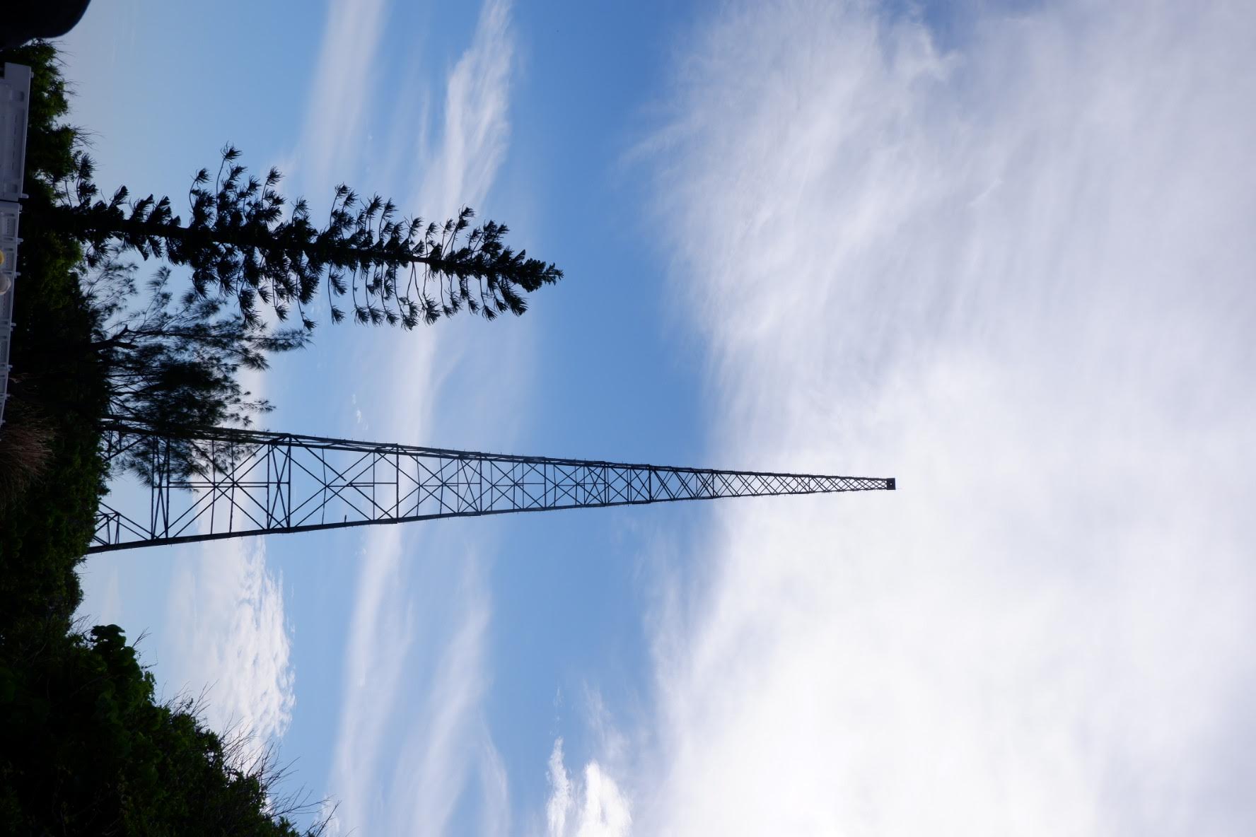 原路返回丫形路口時,會經過電訊商的海底電纜站,鐵枝構成幾何圖案,由底部望上去,視覺效果挺有趣。