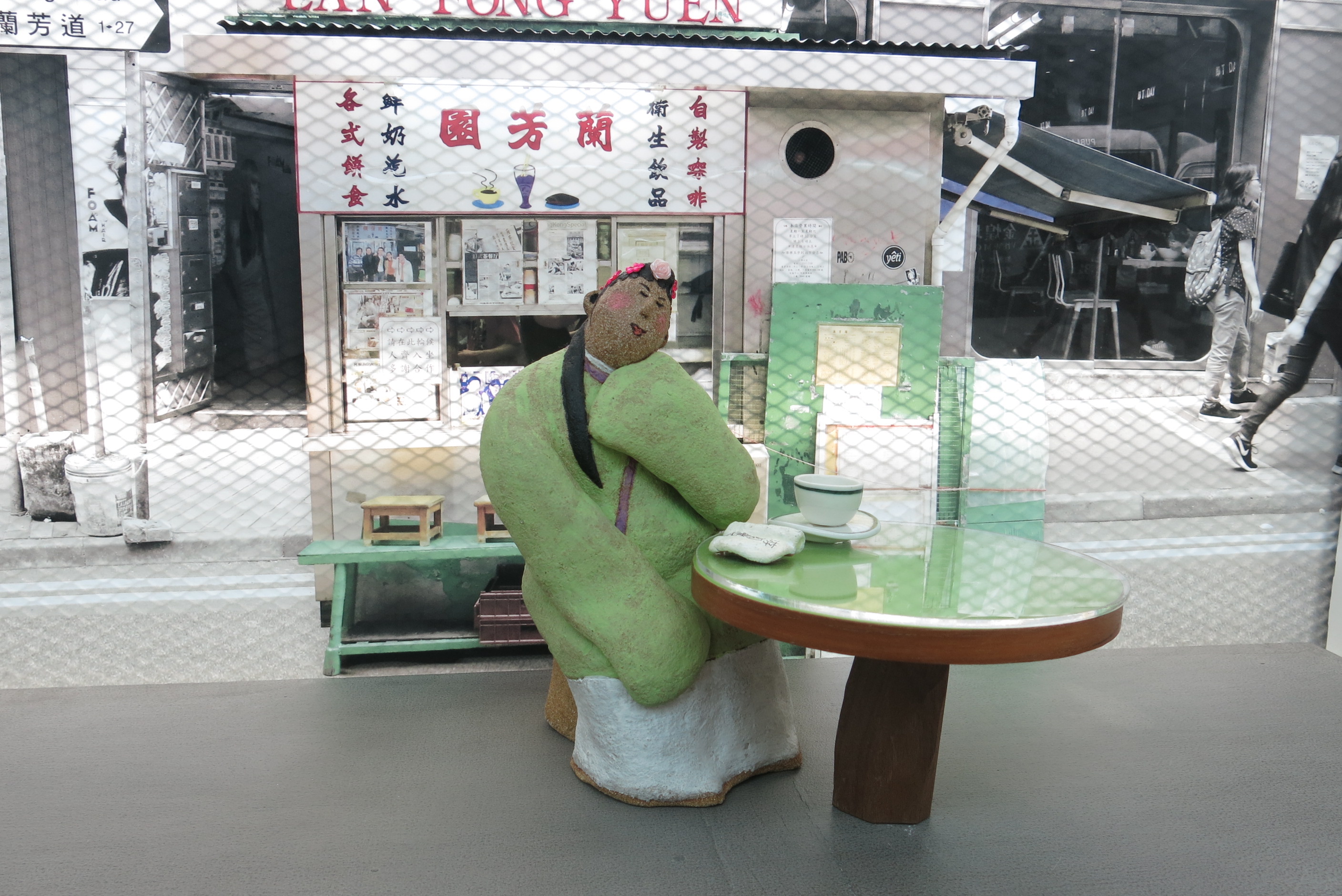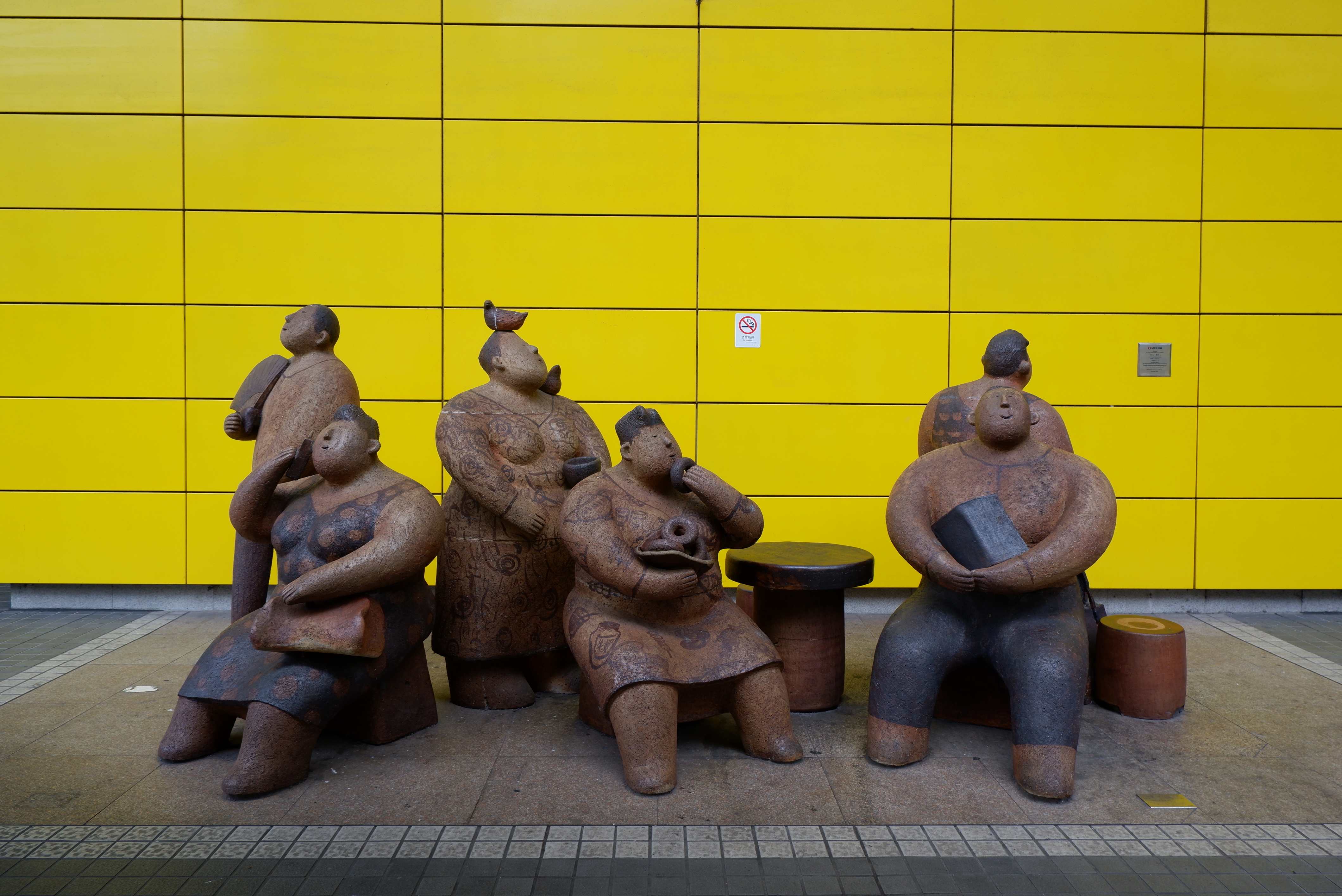 李慧嫻作品《行人、閒人》放置在油塘站的A出入口。因作品體積大,藝術家特意到佛山燒製。(欣欣攝)