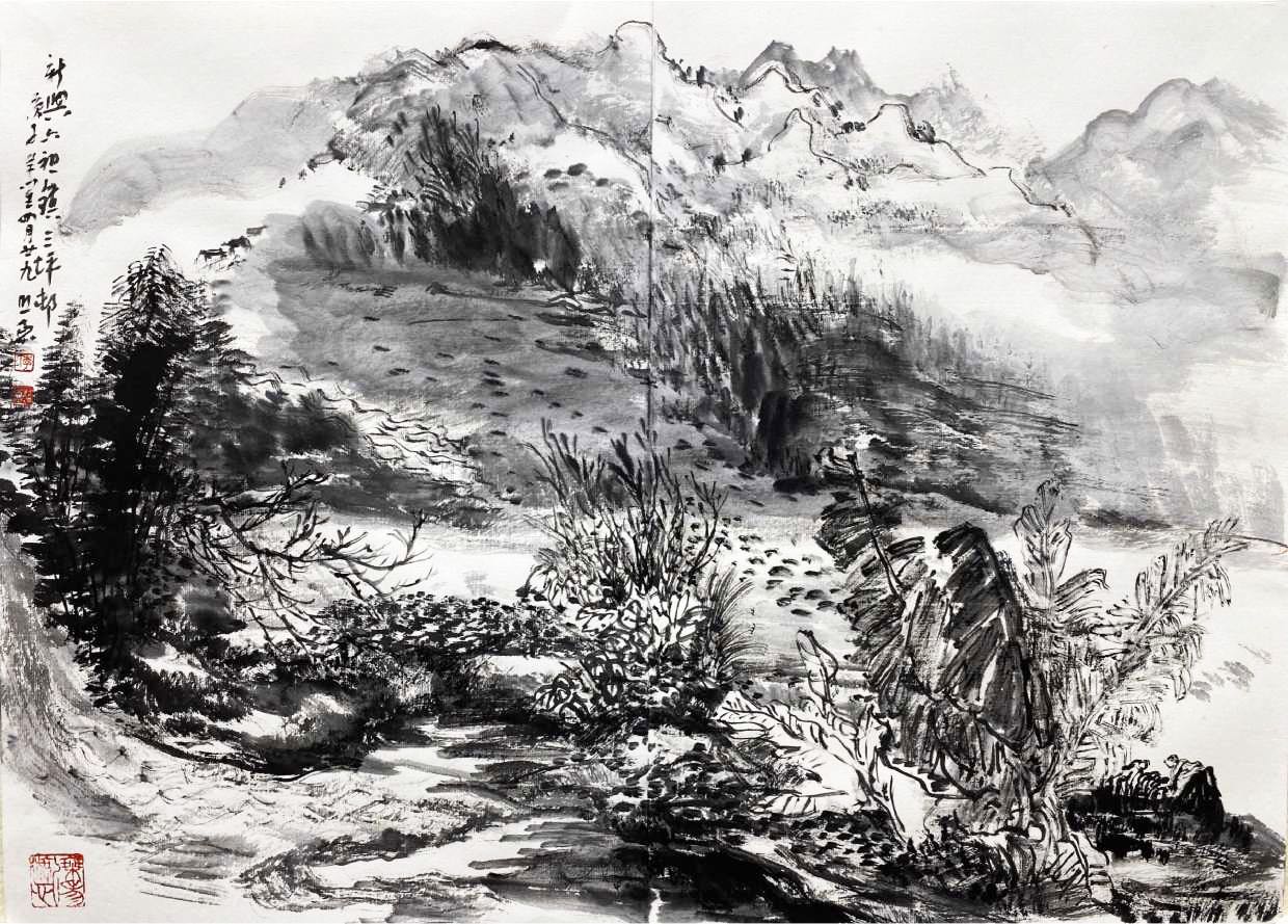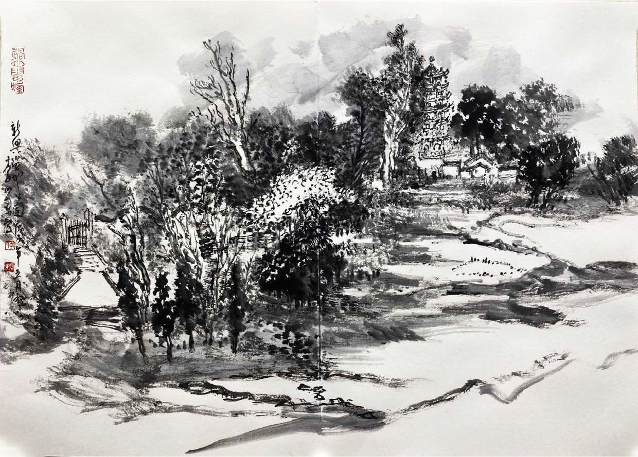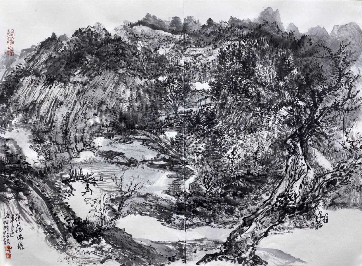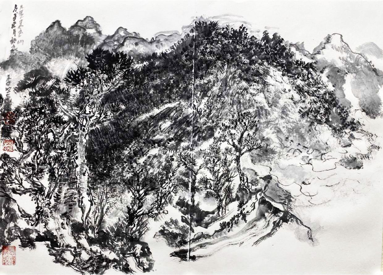 此次展出分為兩部分,一是李照東作為修習日課的意筆花鳥寫生,一是近期赴禪宗六祖惠能故鄉——雲浮新興縣所作山水寫生。