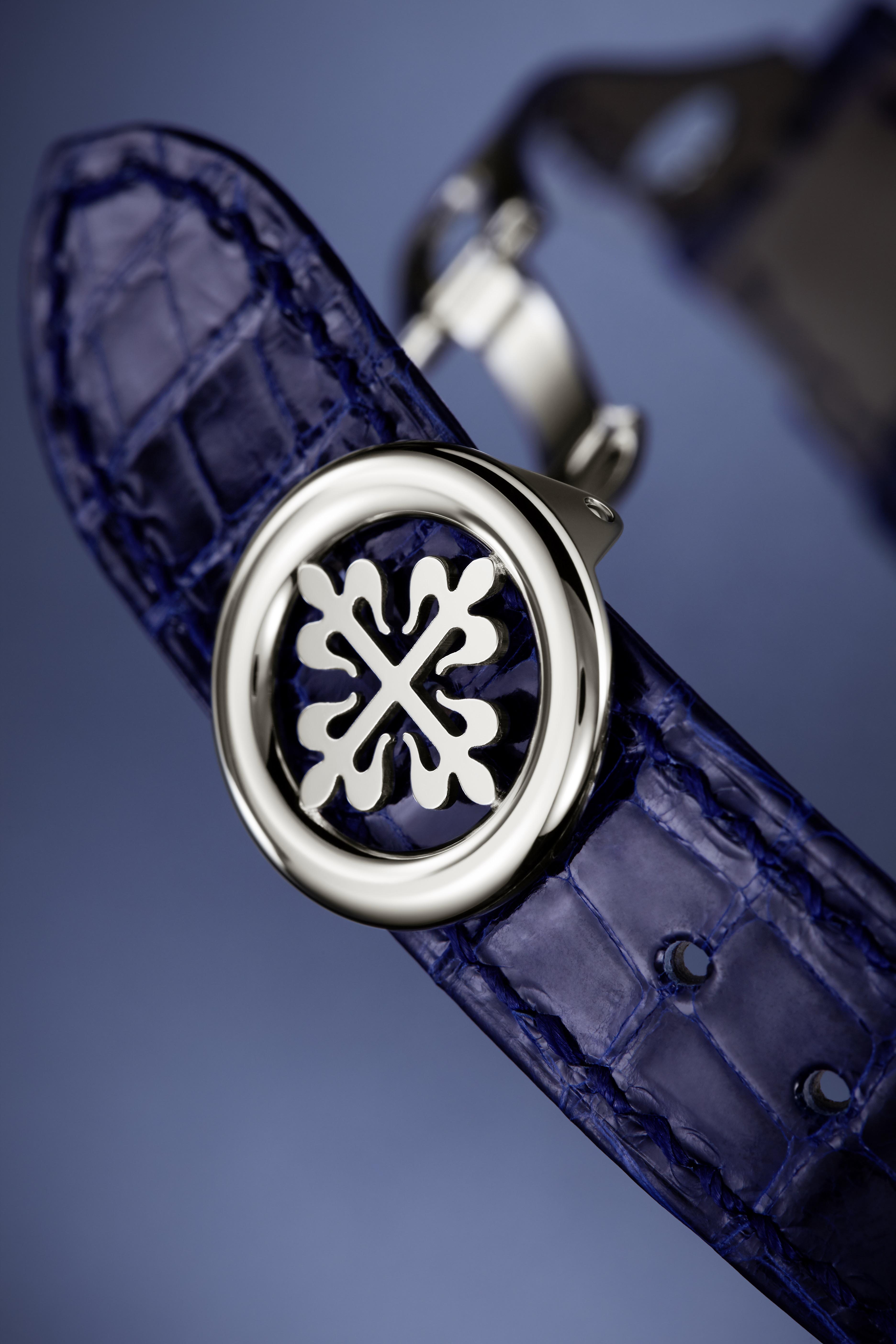 5370P-011腕表的方形紋理鱷魚皮表帶由人手縫製。
