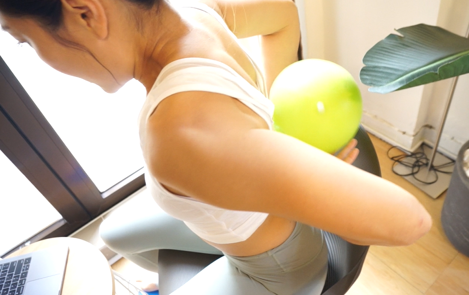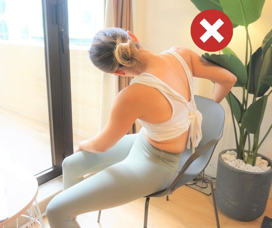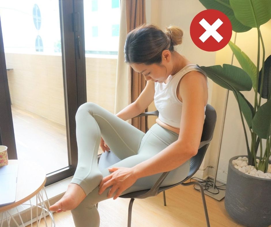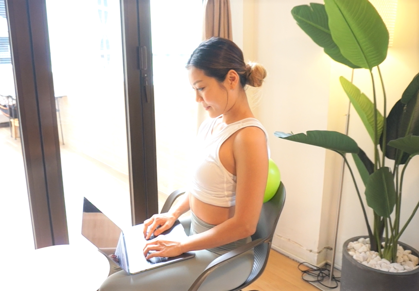 在家工作時翹腳坐、寒背,姿勢不正確會為身體造成壓力,日積月累變成勞損。Jyothi提醒讀者:「人的坐姿十分重要,要提醒自己無時無刻挺直,頸、膊、腰成一直線,如果雙腳凌空,可用書或硬物墊高,使髖關節得以放鬆。如果覺得持續挺直腰部很困難,建議在背與椅之間放橡皮球,放在中背位置,膊頭可向後推,便可使腰部持續挺直。」錯誤的坐姿有可能使工作時愈來愈疲累,造成肩膊和腰部痠痛,因此每日除了做運動及拉筋外,也要保持正確坐姿,才能更有精神地工作。