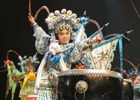 香港是絳州鼓樂藝術團首次出境訪問的地區,至今鼓聲傳及美、法、日逾30個國家與地區。圖為絳州鼓樂《楊門女將》