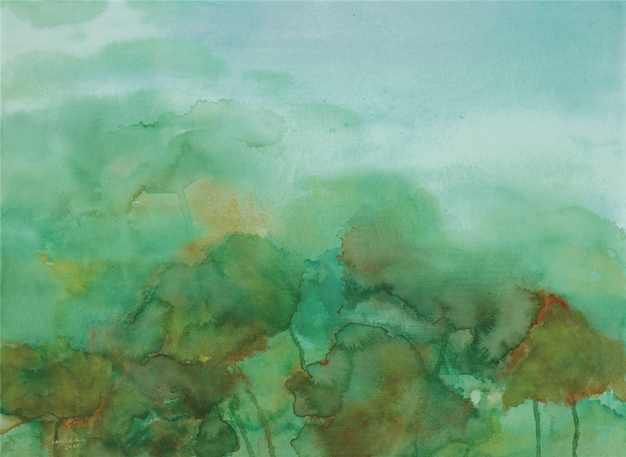 我的水彩畫「翠舞婆娑」系列中既有隨風搖曳的荷葉田之景,又有靜含太古的寧謐之態,無論是刹那驚艷的舞動,抑或溫柔氤氳的清香,與其說是繪自然之景,倒不如說體現出我的心境更為貼切。 文:蕭芬琪