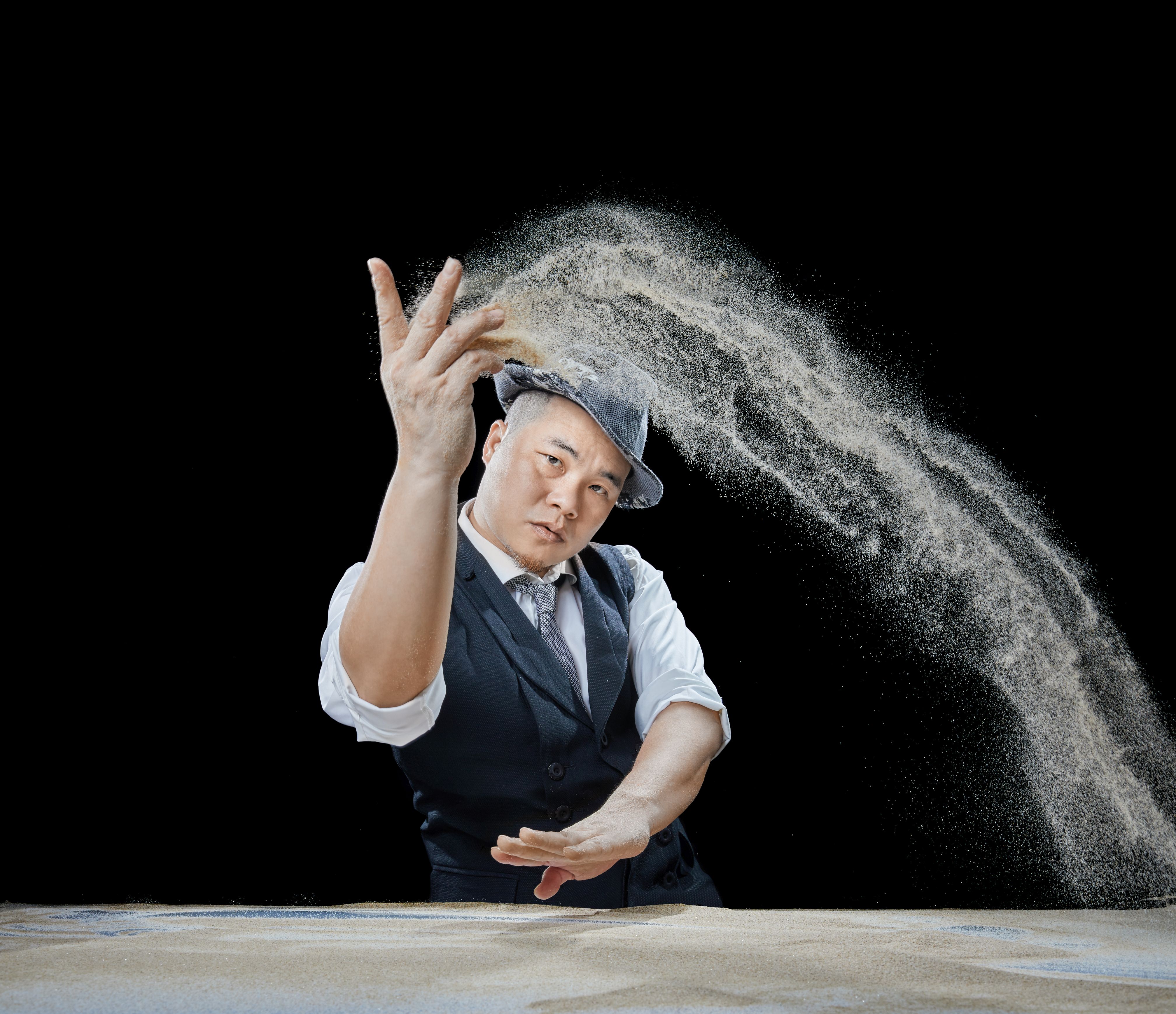 海潮是香港首位沙畫藝術家,他自稱是個表演者,而非畫家,喜歡將沙畫結合不同表演形式。(圖:runmanworkshop)