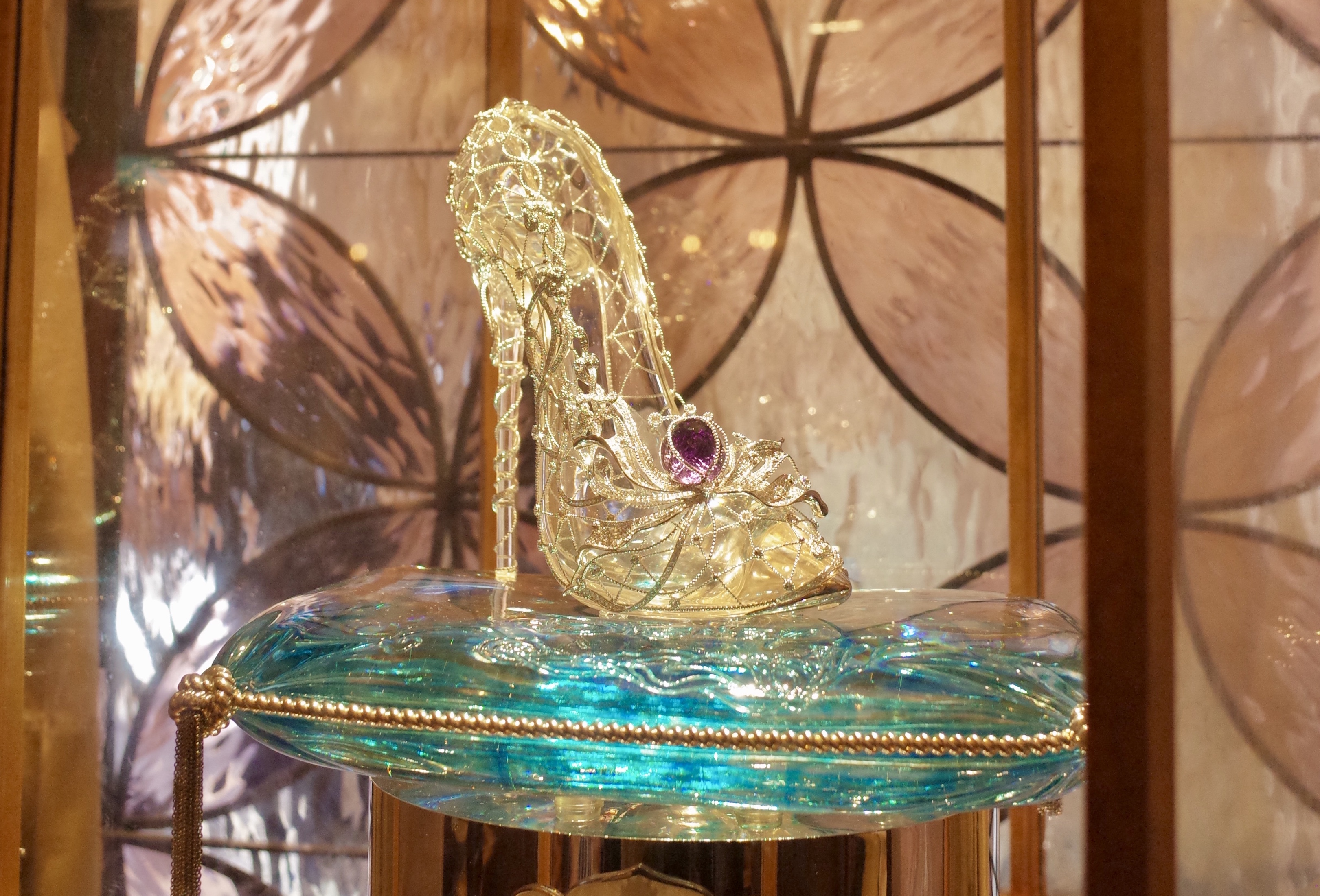 走進城堡,可見是次新增的「皇室禮賓庭」,雕刻、掛毯皆充滿皇室華麗風格,訪客更有機會跟迪士尼公主和女王見面拍照留念,不過疫情當下,拍照需要保持社交距離,也是一個「全新體驗」。「皇室禮賓庭」的對面,是本地品牌開設的「城堡珠寶店」,售賣紀念品,但最吸睛的還是透明箱子內的玻璃鞋及玫瑰花,造工精美。