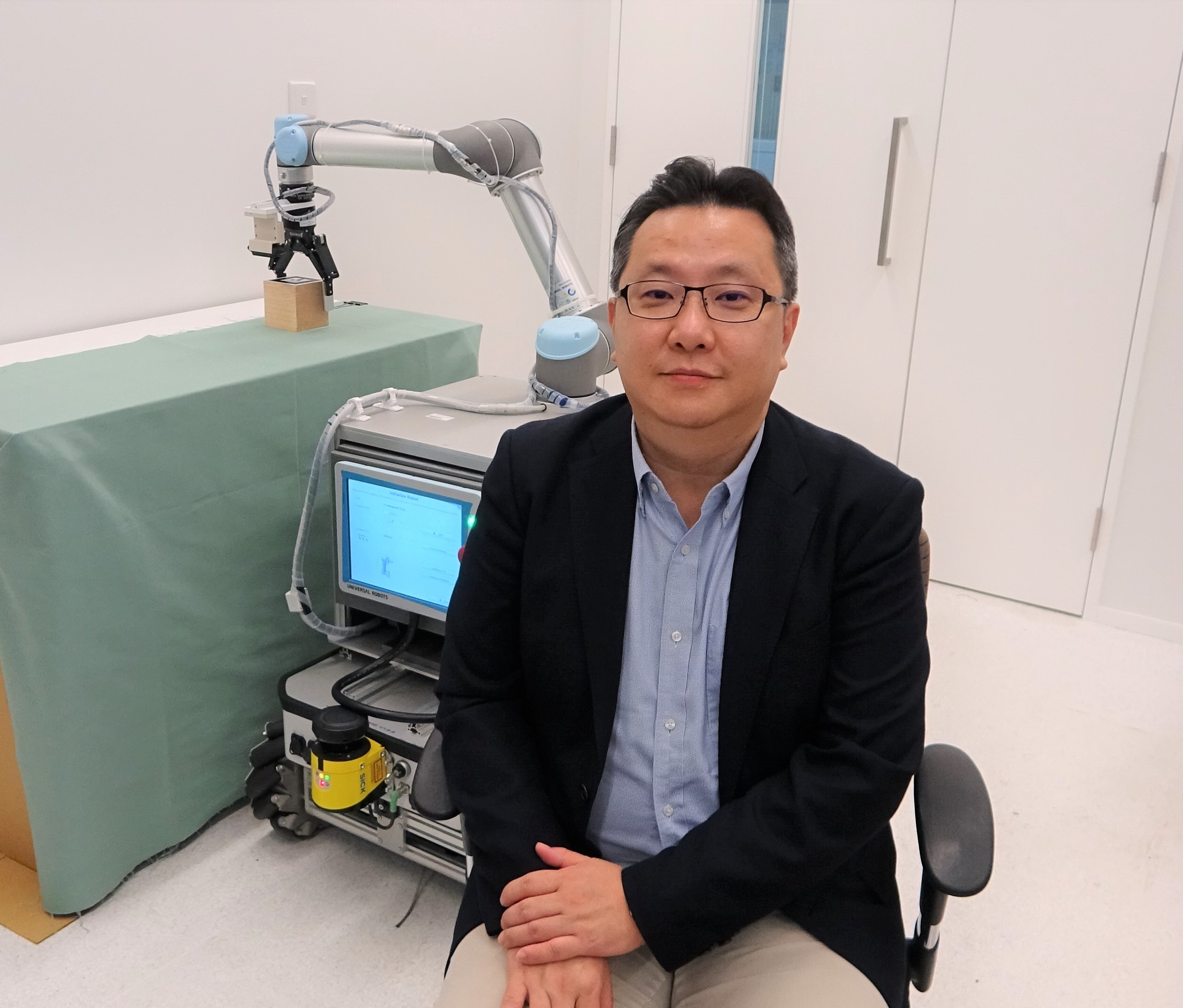 應科院谷德權博士介紹身後旁智能機械臂的運作情況。
