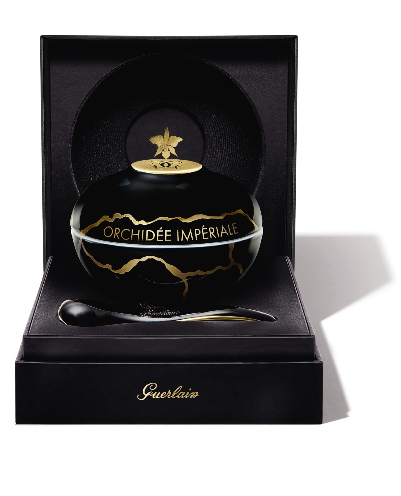 法國瓷器世家Bernardaud設計的瓷器極具特色,善用金漆凸顯奢華。嬌蘭最近推出的限量版金繕禦庭蘭花黑蘭至臻再生乳霜聯名Bernardaud創作,用上日本金繕獨門手藝,結合法式瓷藝,創作出黑漆亮面、輔以金色點綴的瓶身。加上乳霜蘊含黑蘭免疫科技(Blackimmune),針對95%影響肌膚自我防衛機制的細胞,加強抵禦能力,令肌膚逆齡再生,為用家帶來視覺及臉蛋的美。