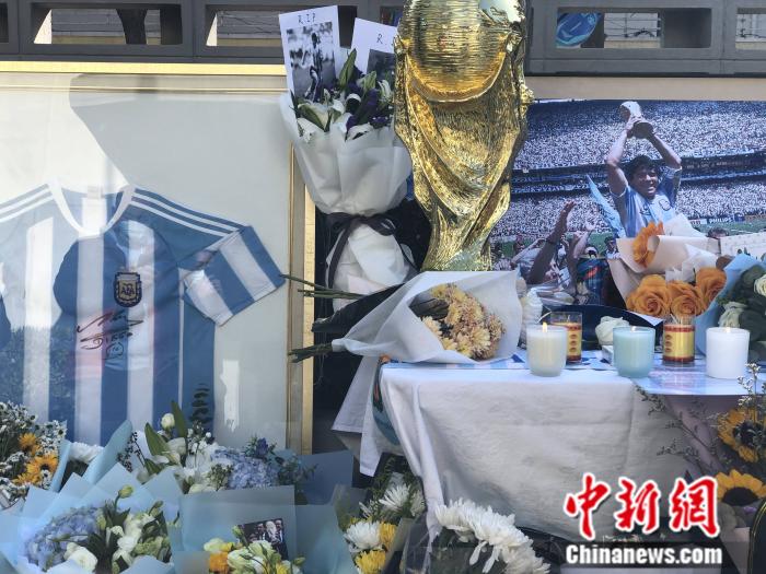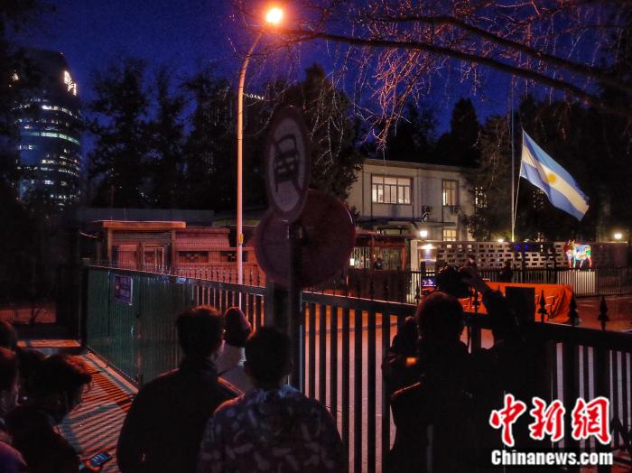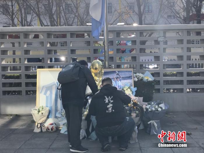 夜色籠罩下的阿根廷駐華使館門前,仍然聚攏著前來悼念馬勒當拿的球迷。過了五點,這裏便不再接待球迷進入。使館工作人員說,他也不確定,明天還會不會保留紀念台。