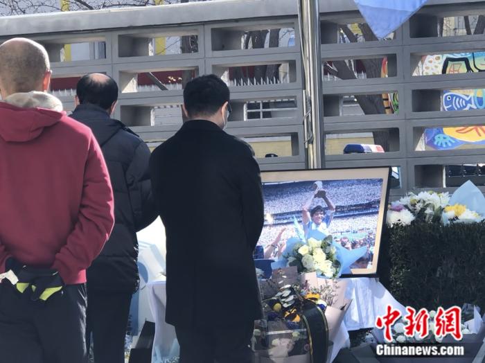 在來來往往的人群中,像老王與小楊這樣,長久駐足的悼念者並不多。大多數球迷都是匆匆而來,將懷中的鮮花放下,靜默幾秒,而後轉身離去。