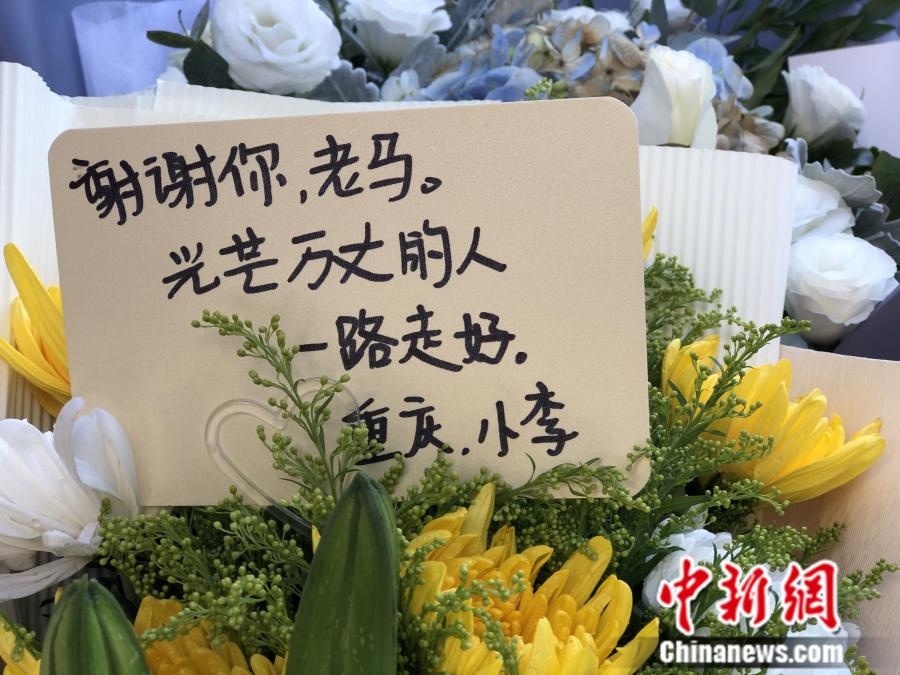 人群中,又一個中年男人帶著頭盔、裹著厚厚的護膝趕來,那是每天都會碰到幾十次的一身行頭。他放下一束花,拍了幾張照片,把它發送了出去。