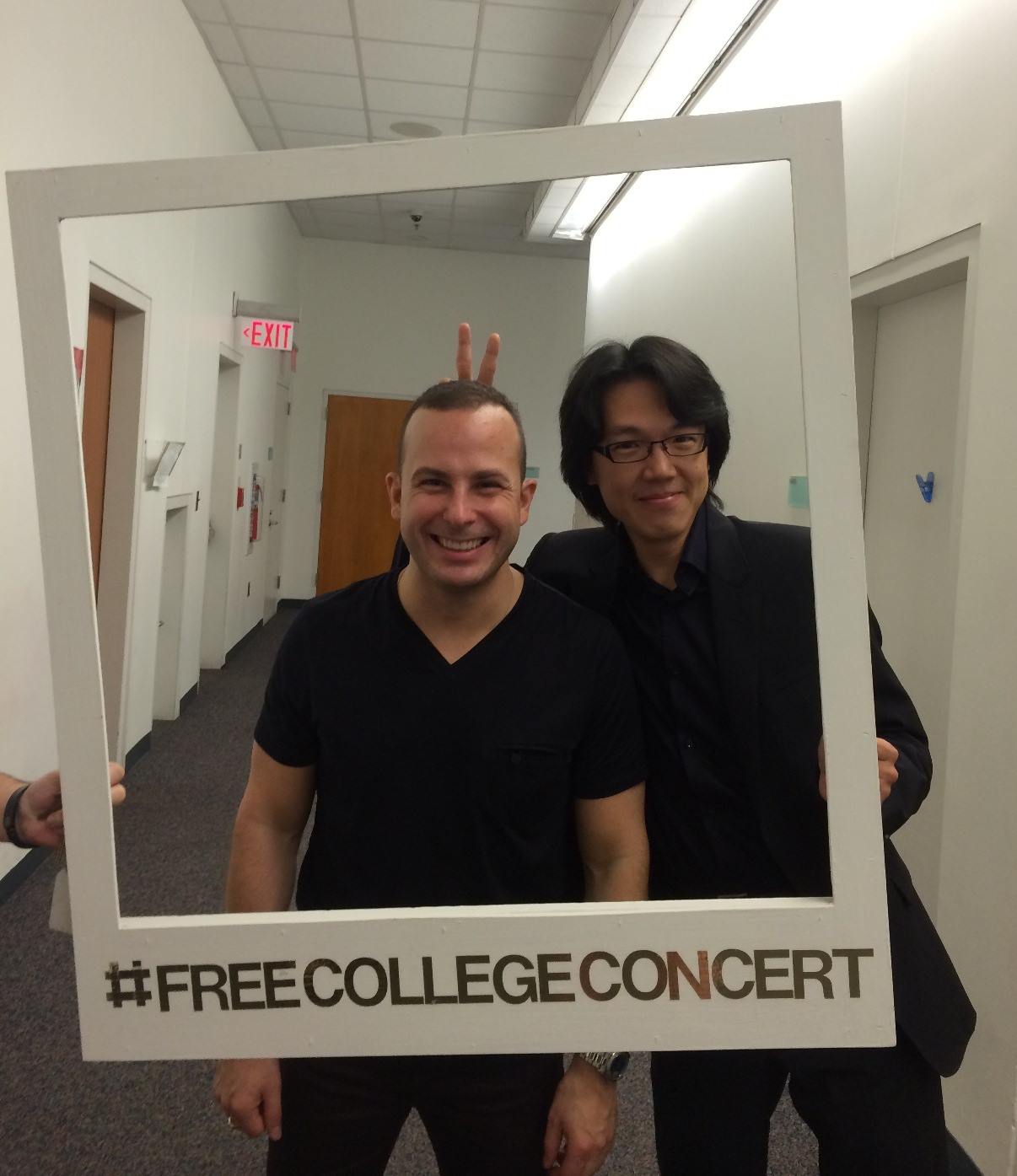 廖國敏為首位出任費城樂團助理指揮的華人,成為他指揮生涯的突破點。圖為他與該樂團音樂總監的後台合照。(圖:受訪者提供)