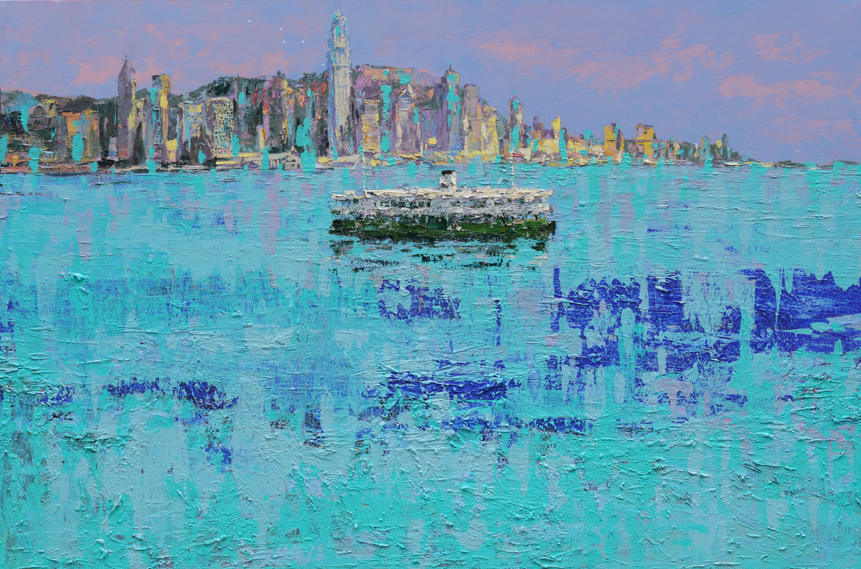 熟悉廖井梅的讀者,一定了解畫家多創作人體,而鮮有畫風景。展覽除其人體畫作外,還呈現了她最新的風景系列「疫情下的香港印象」。對廖井梅來說,風景畫是自己想嘗試創作,而不敢創作的題材。在疫情下,她突破自我,繪畫不少風景畫作:「平日太忙碌,沒有留意身邊景物。疫情期間,令我有更充裕的時間欣賞周邊的風景。走在人流稀疏的街道,看到維港隨着天色而變得非常浪漫,激發我繪畫的靈感。」由此創作《映日》、《渡》等與天星小輪有關的畫作。作品採用廖井梅常用的創作方式——具象及抽象融合的手法演繹,不論人物、動物或風景,她筆下的主體均寫實細膩,背景則運用不同色塊營造寫意的畫面,如同傳統國畫中的留白,令觀眾留下想像空間。並常常出現鮮明的顏色互相碰撞,具強烈個人風格。在「疫情下的香港印象」中,船身描繪細緻,其他景物略顯虛幻,亦正是這份虛幻,讓觀看者腦海中浮現曾經看過的維港景色,充滿共鳴。