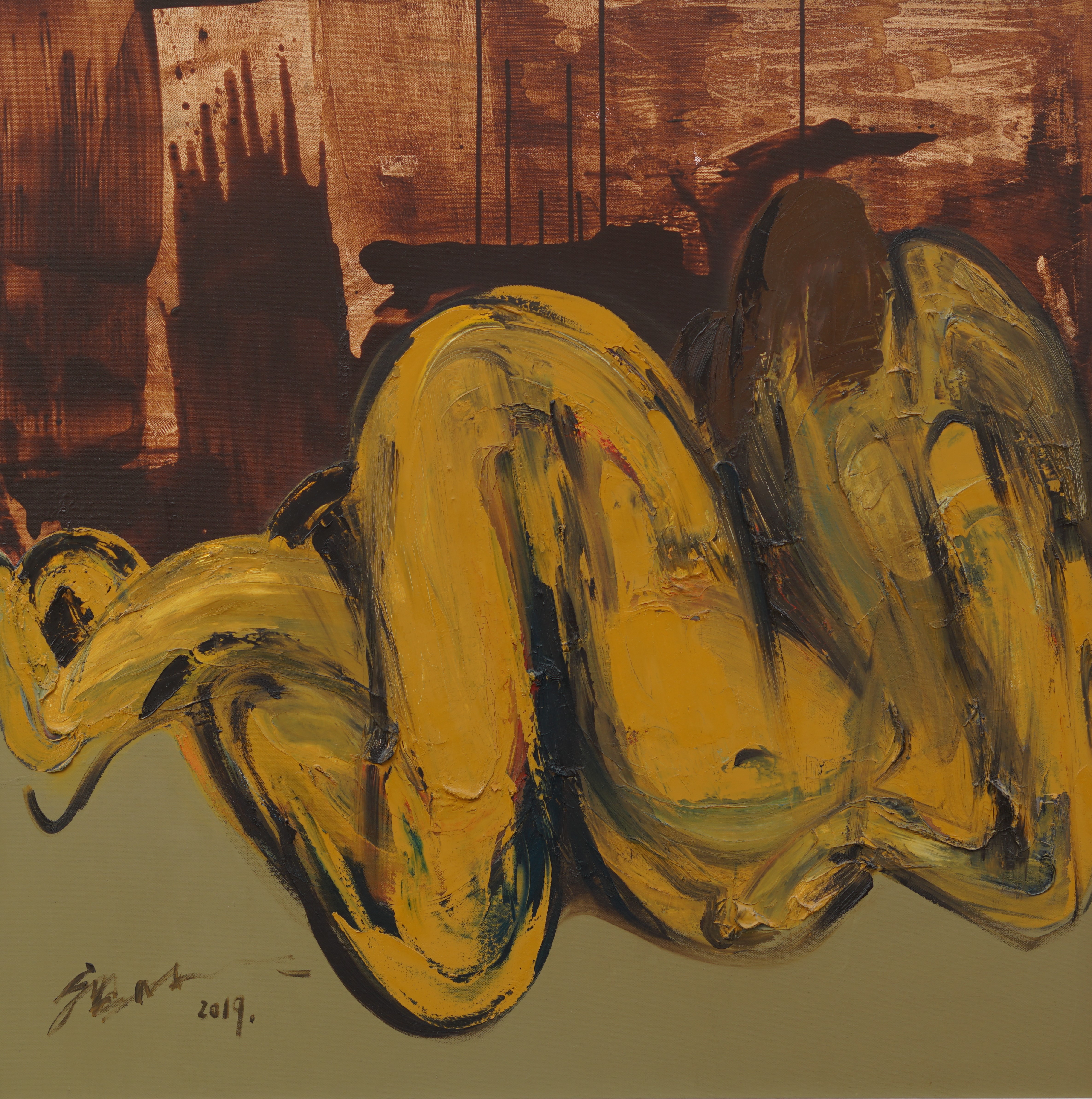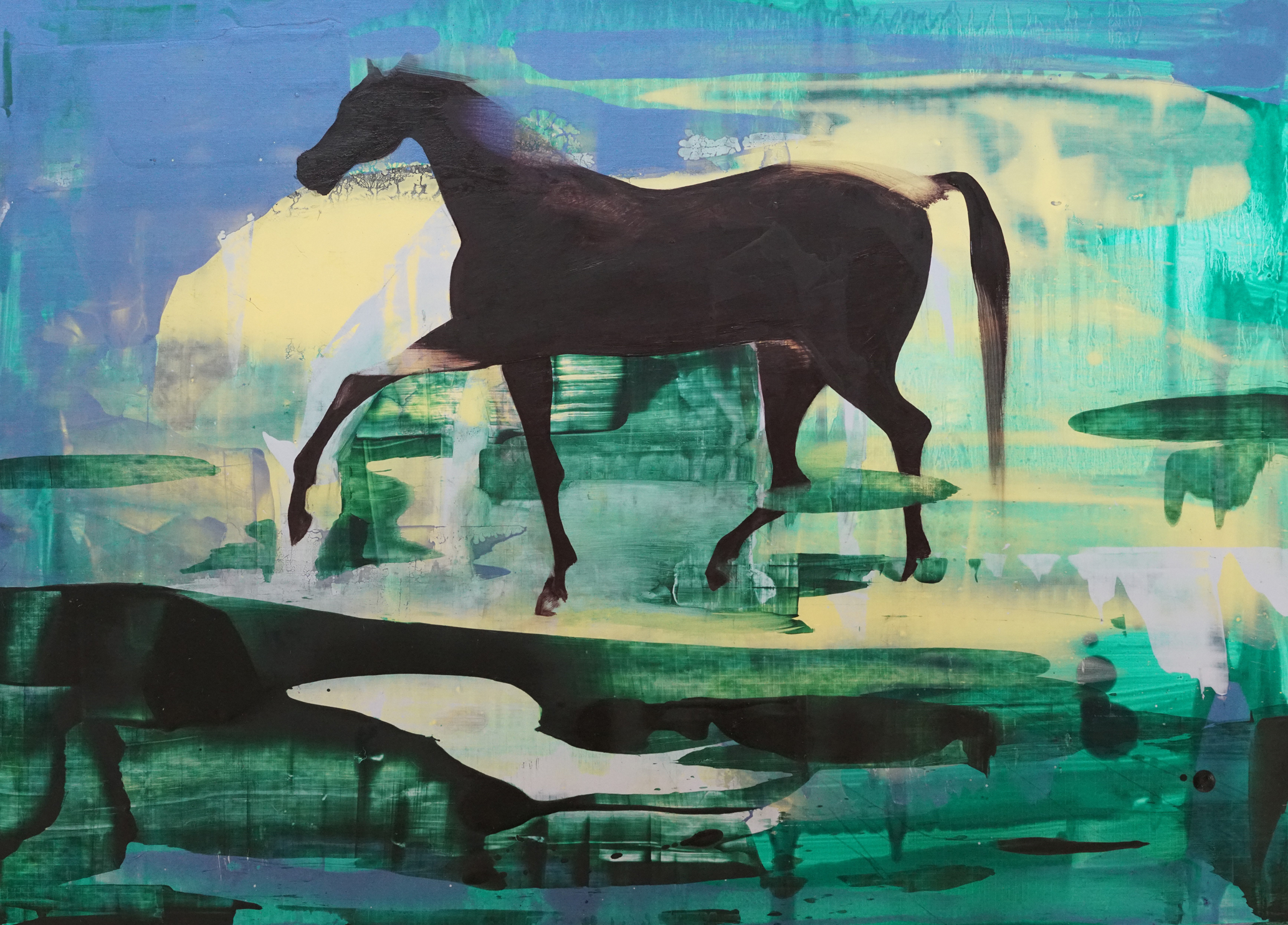 廖井梅作品《青海的記憶(四)》,2016年。畫家表示,繪畫馬和人體同樣想表達矛盾的力量感。