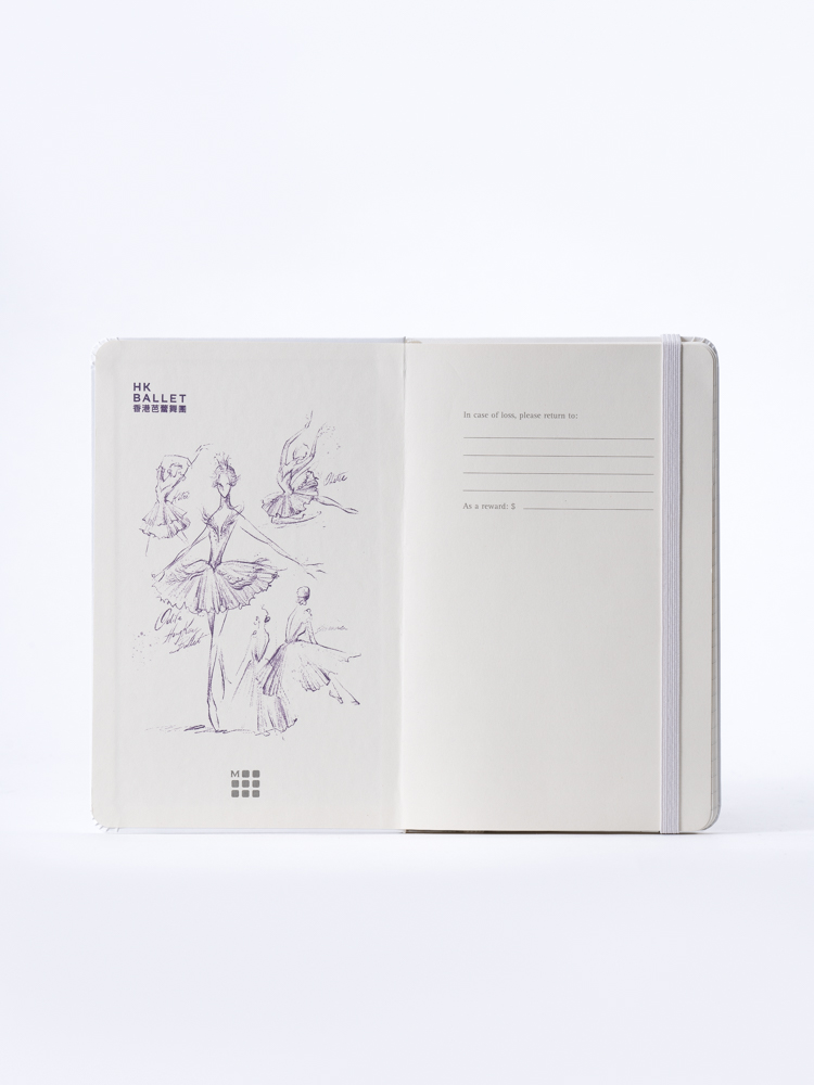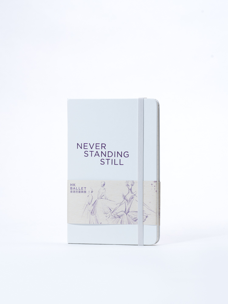 與著名記事本品牌Moleskine首次聯乘推出的限量版記事本,白色封面上印有紫色的舞團經典口號「Never Standing Still」,優美簡約。