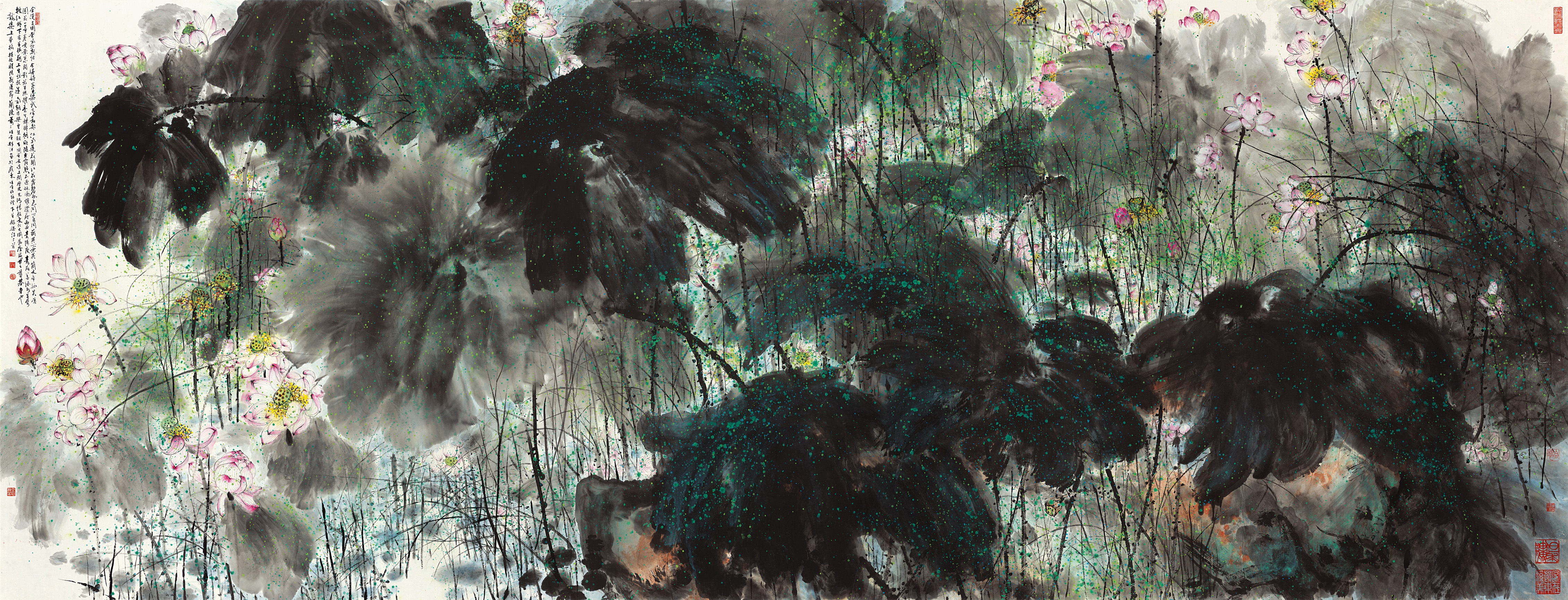 蕭暉榮作品《萬荷圖》,2010年,192×500cm。