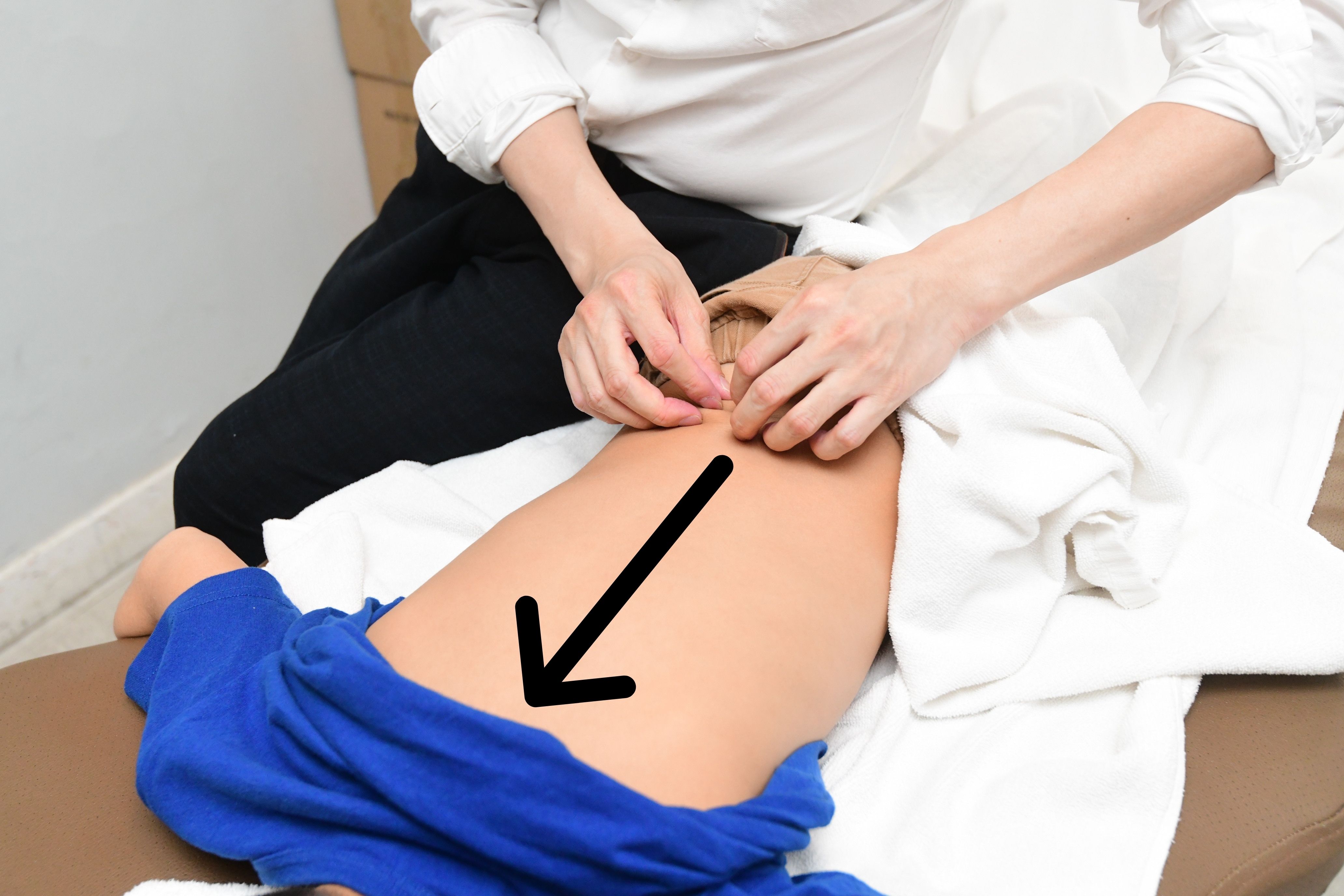 膀胱經:先由上到下、下至上輕揉背部,放鬆背部。背部脊柱兩側1.5吋和3吋(此吋等於小孩一格手指)是膀胱經,沿著背部脊柱旁開1.5吋用兩手拇指由上至下慢慢地按揉,每個位置只須停留1至2秒。然後背部脊柱旁開3吋重複一次。