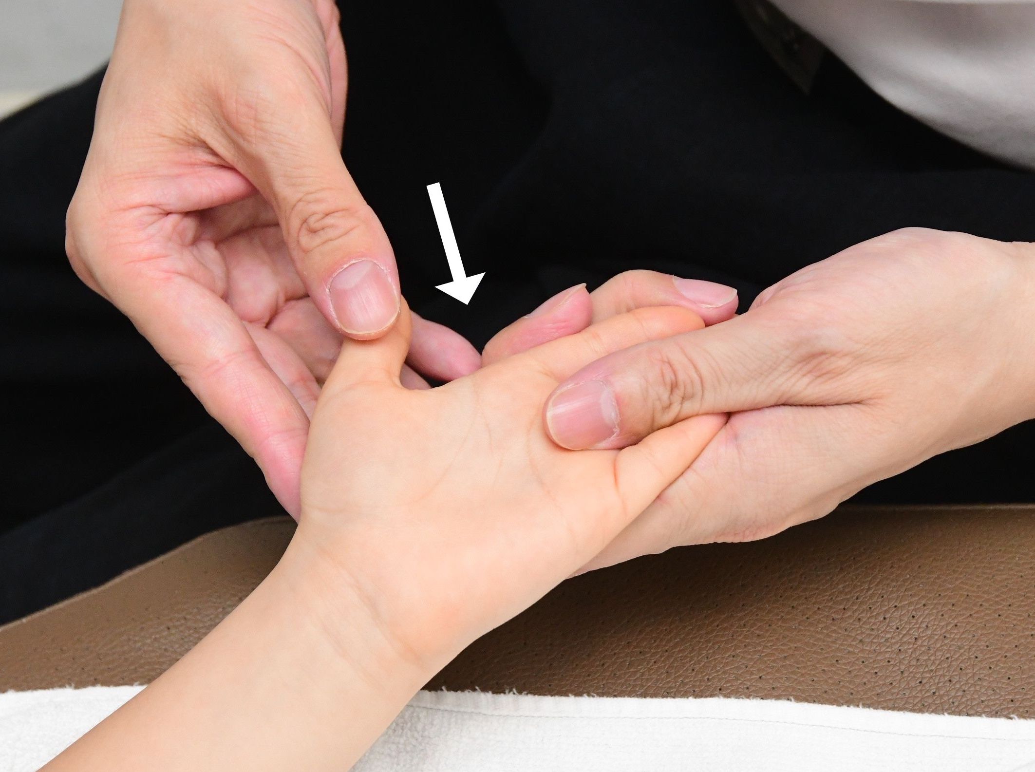 脾胃經:拇指前段外側最遠端一節為脾經,近段為胃經,用大人的拇指貼在小兒拇指上向上做旋推為補脾胃,從拇指外側面指根推向指尖為清胃。